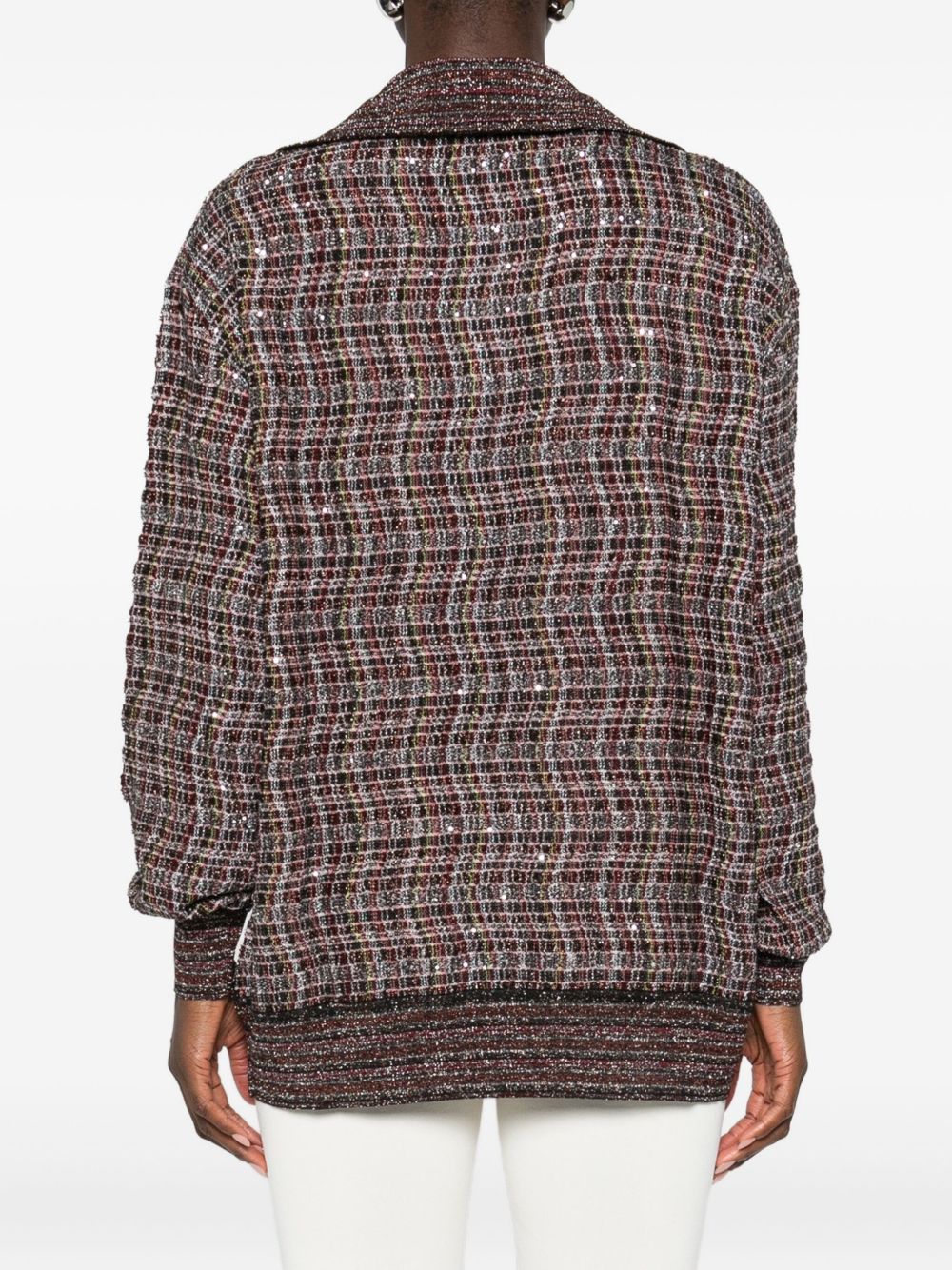 dark brown textured knit polo collar long sleeves ribbed hem The item you receive may differ slightly from the item photographed. This is due to the artisanal nature with which all Missoni products are constructed.