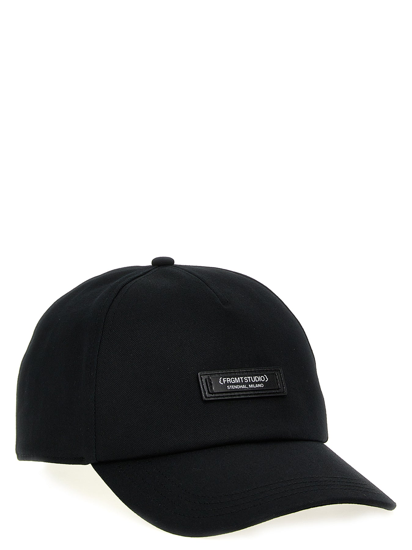 Moncler x FRGMT cotton gabardine cap with front leather logo, cotton canvas lining, adjustable back strap.