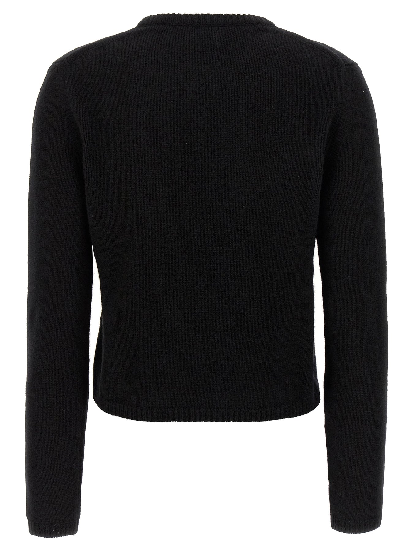 Fineness 5 shaved wool and cashmere blend sweater, front chenille logo embroidery, crew neck, long sleeves.