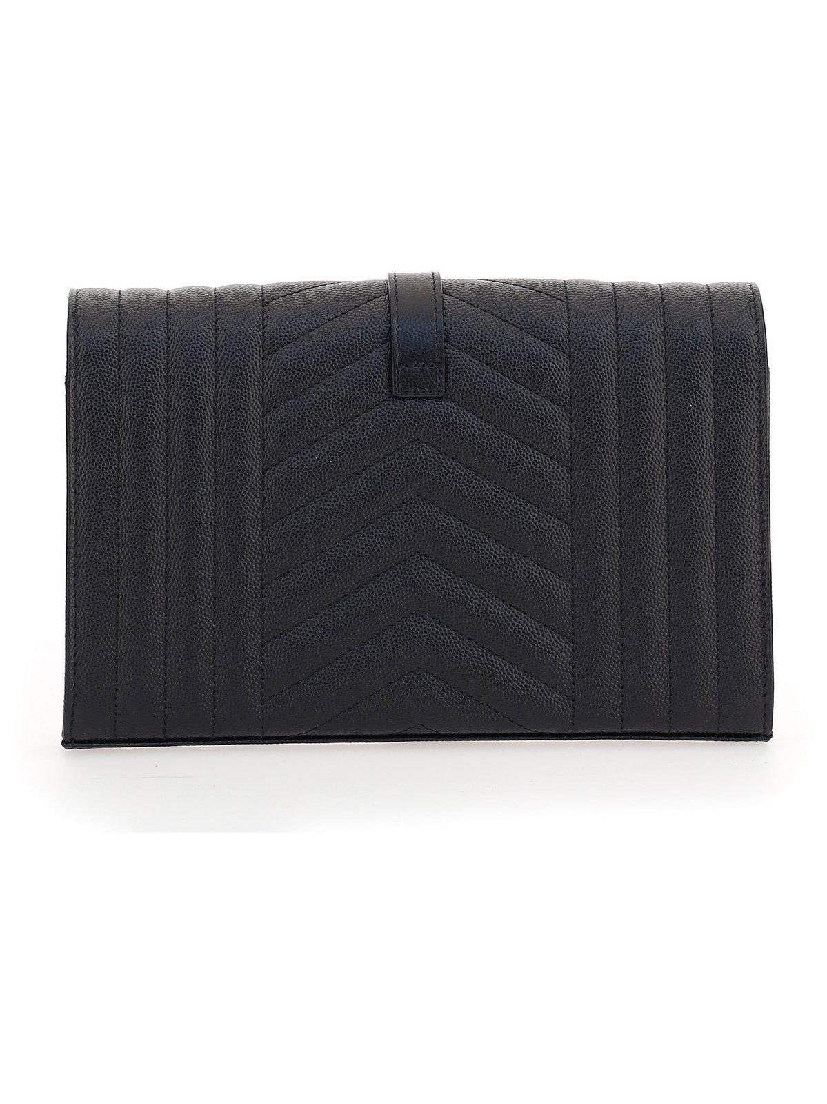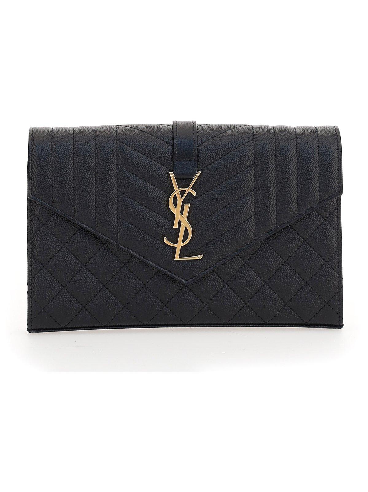 "Monogram" pouch wallet on chain from Saint Laurent, with one main compartment, snap button closure, two open internal spaces and a central zip pocket.