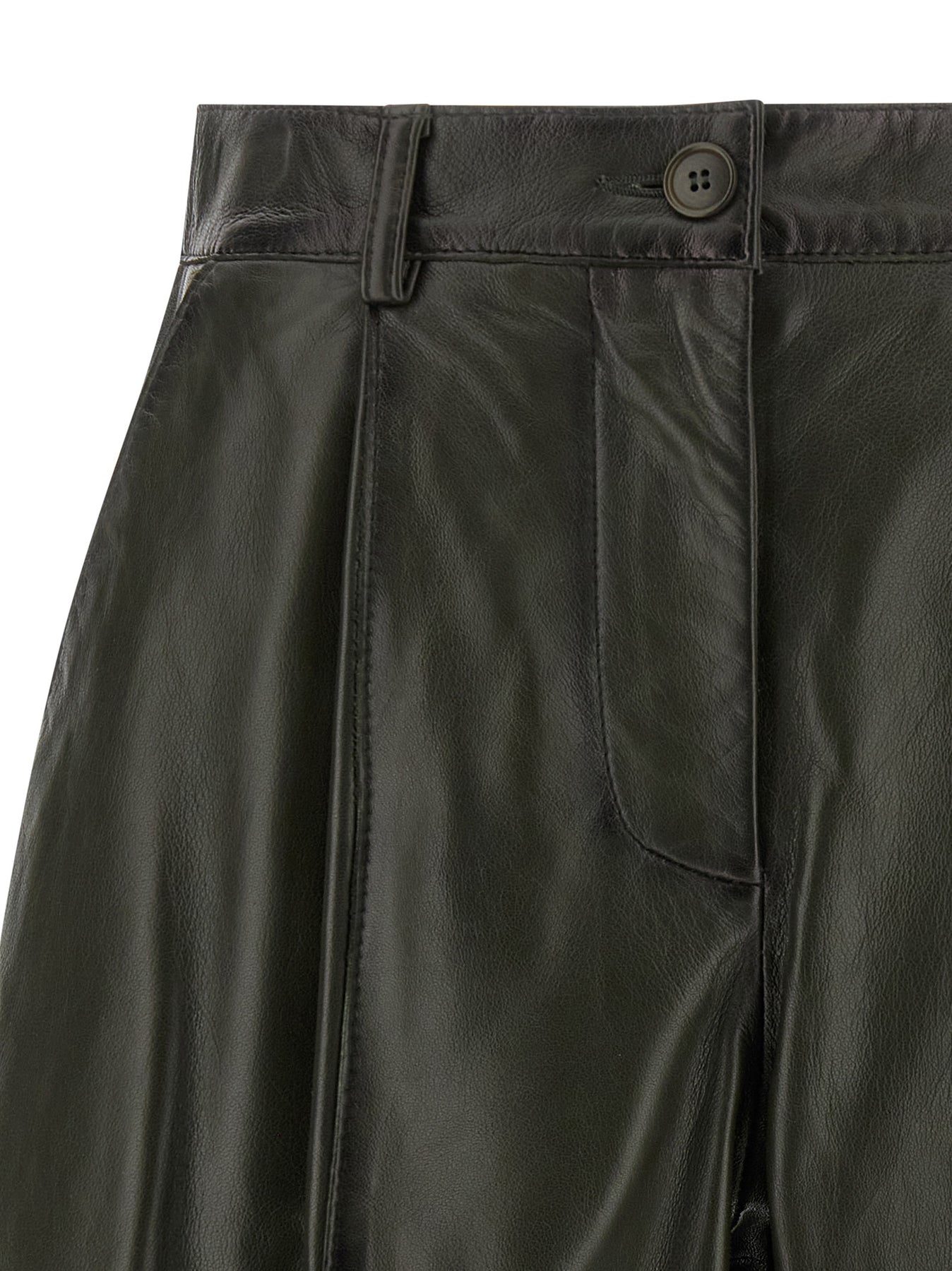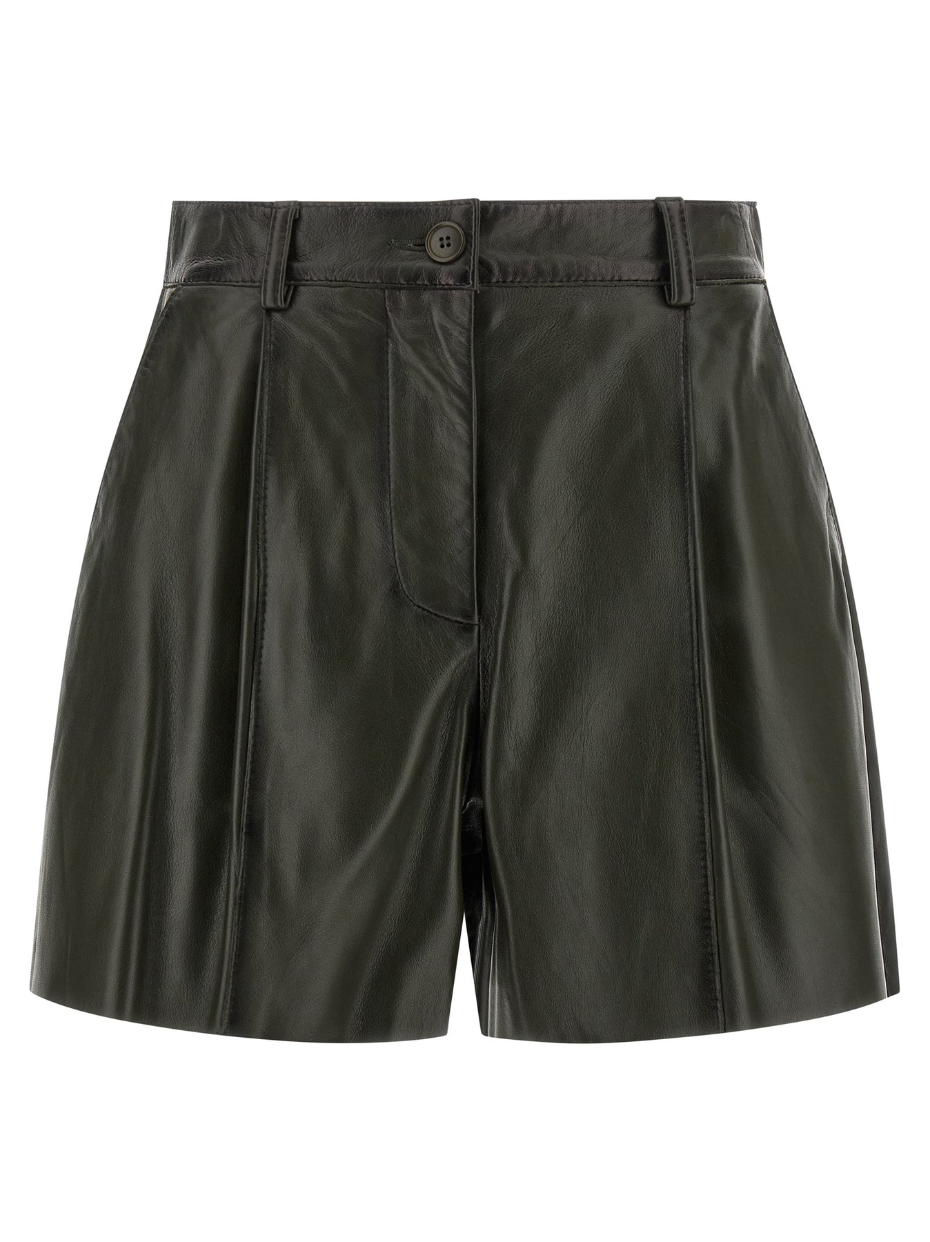 'Maciock25W' leather shorts, front clamp and stitching, zip and button closure, pockets, lining.