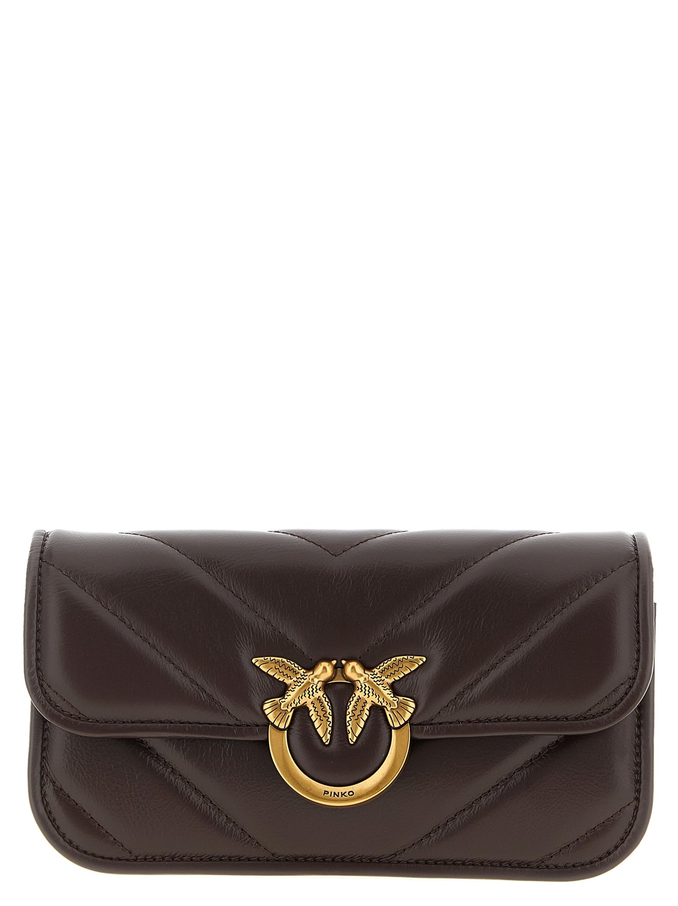 'Love Box Baguette' large shiny leather handbag with chevron quilting, rectangular silhouette, magnetic flap closure with front metal 'Love Birds Diamond Cut' logo, adjustable and removable leather shoulder strap, cotton drill lining.er strap, cotton drill lining.