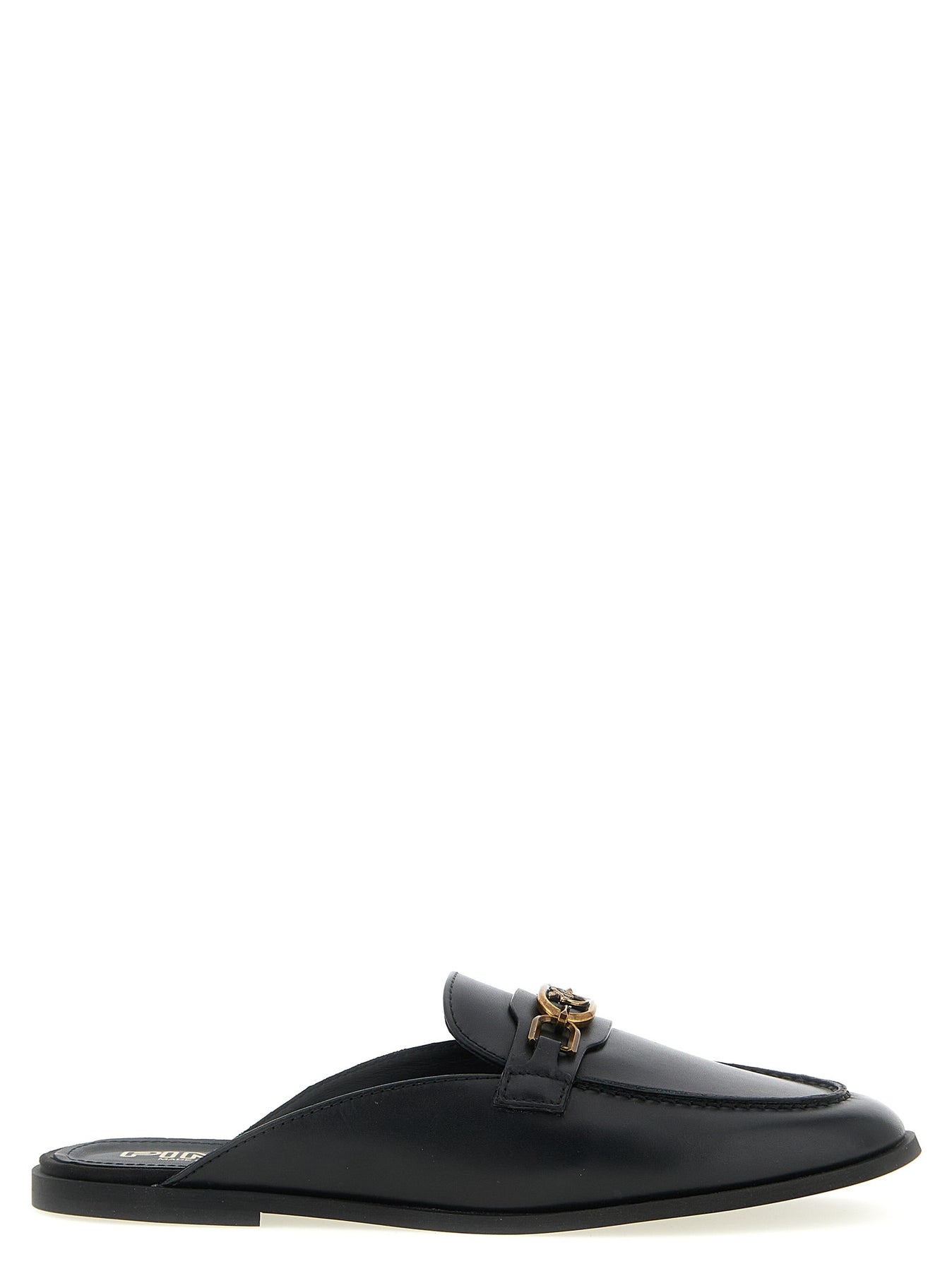 'Naty 09' leather sabots, front metal logo, rubber sole.