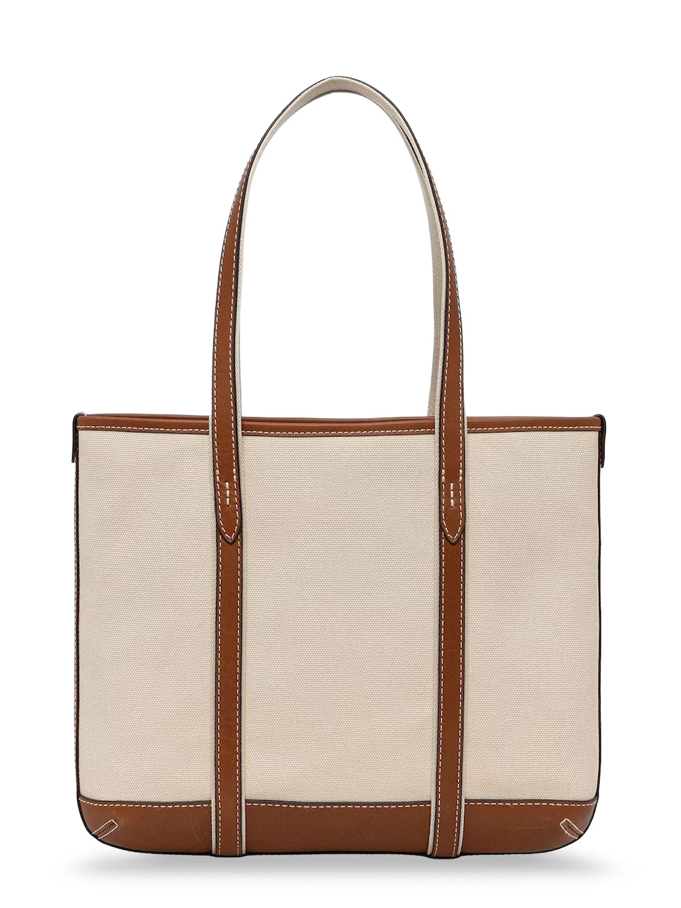 Double leather handle Without closure Internal zip pocket Leather trim Canvas/Leather W: 36 cm, H: 28 cm, D: 7 cm SKU: 428P03085001
