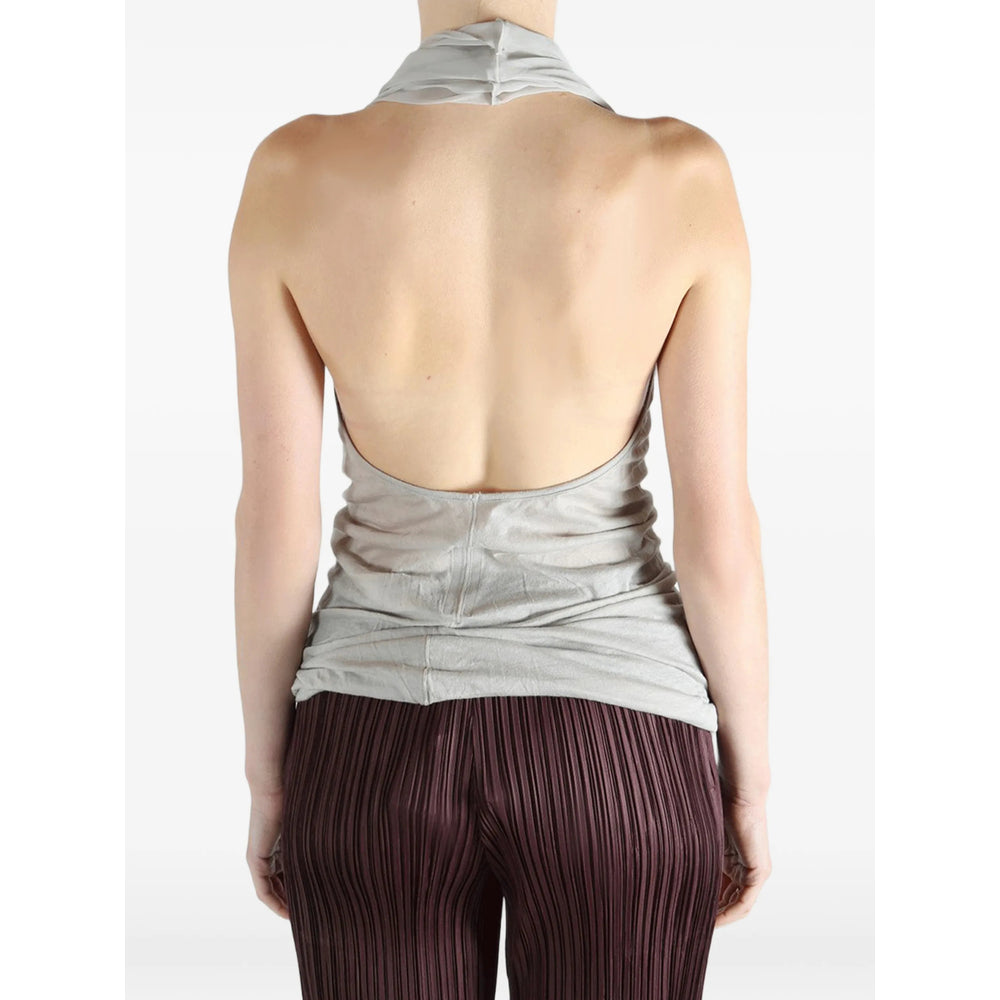 grey draped design sleeveless halterneck open back