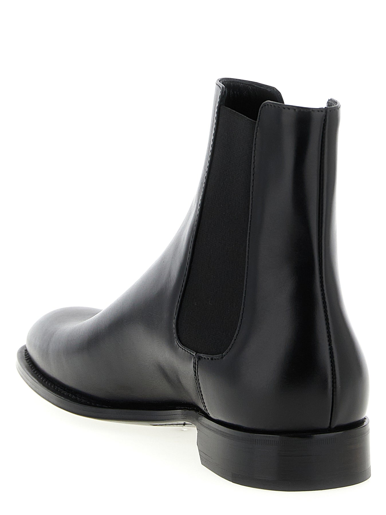 Box Saint Laurent leather 'Adrien' ankle boots, Chelsea model, almond toe, side elastic inserts, lamellated heel, leather sole.