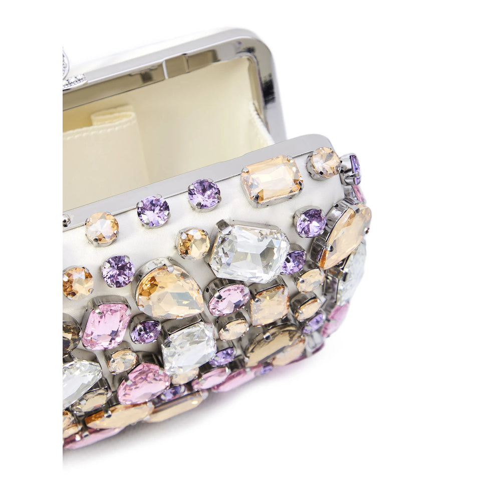 white multicoloured crystals removable chain shoulder strap clasp closure