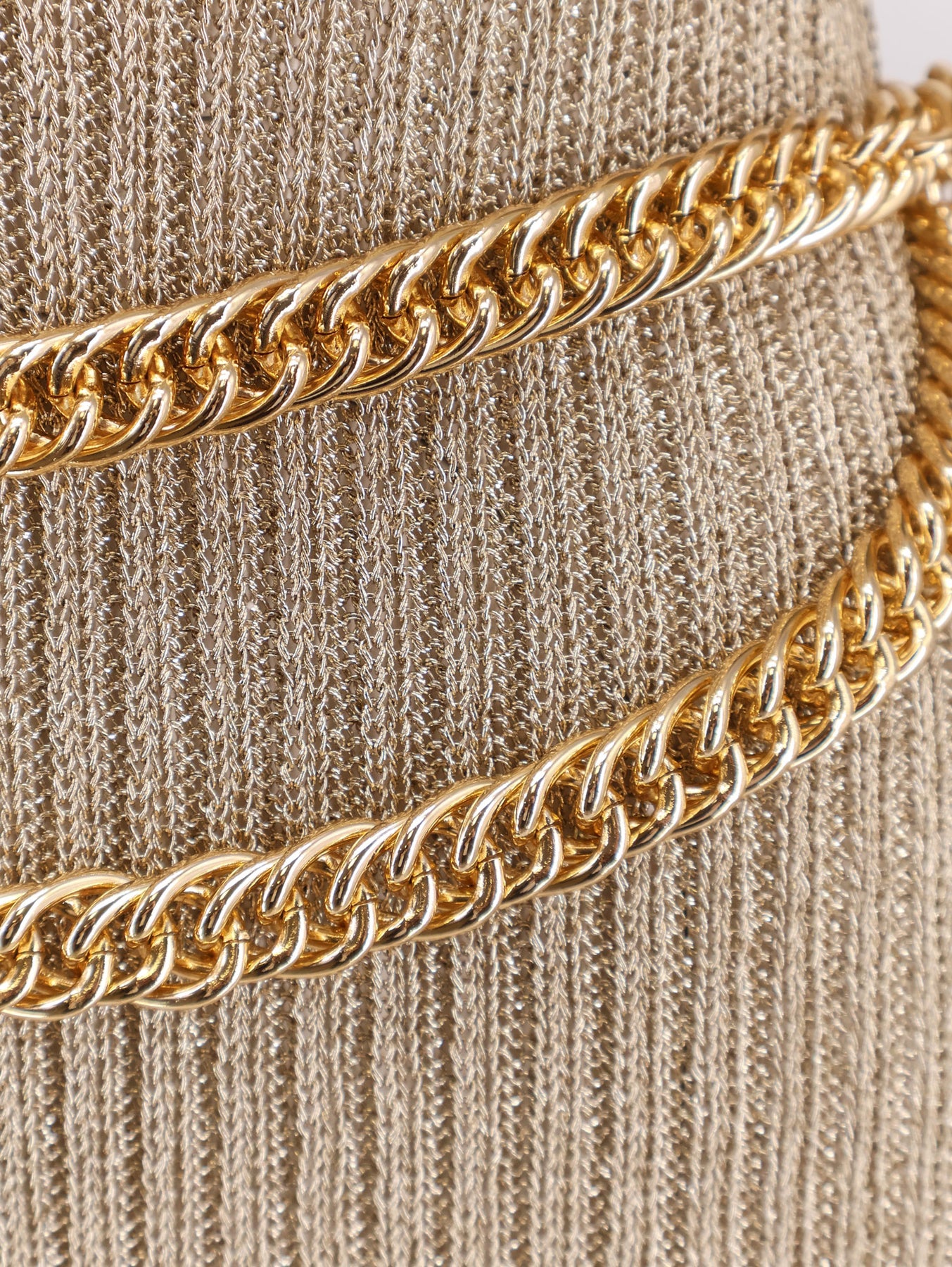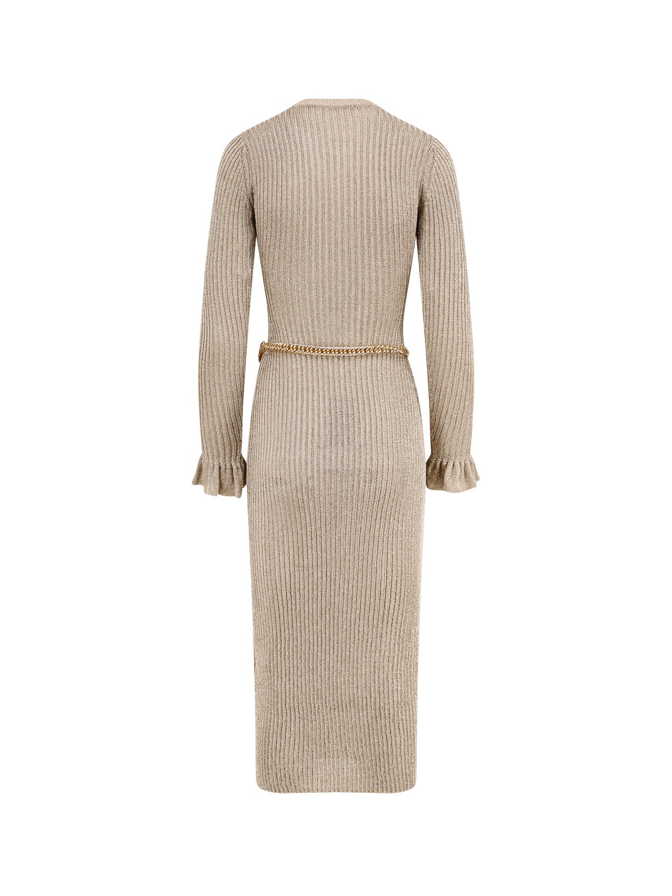 Button closure on the front Crewneck Long sleeves with bell cuffs Two patch pockets on the chest 65% viscose, 35% metallic fiber SKU: SC25011MGDGOLD