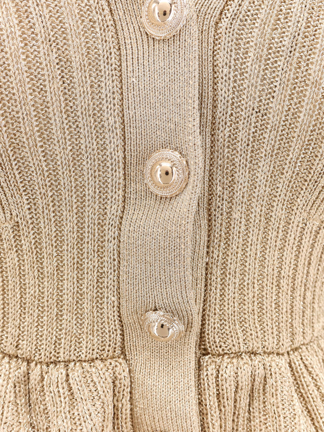 V-neckline Button closure on the front Long sleeves Ruffle detail at the waist 65% viscose, 31% metallized fiber, 3% polyamide, 1% elastane SKU: AW25136SGDGOLD
