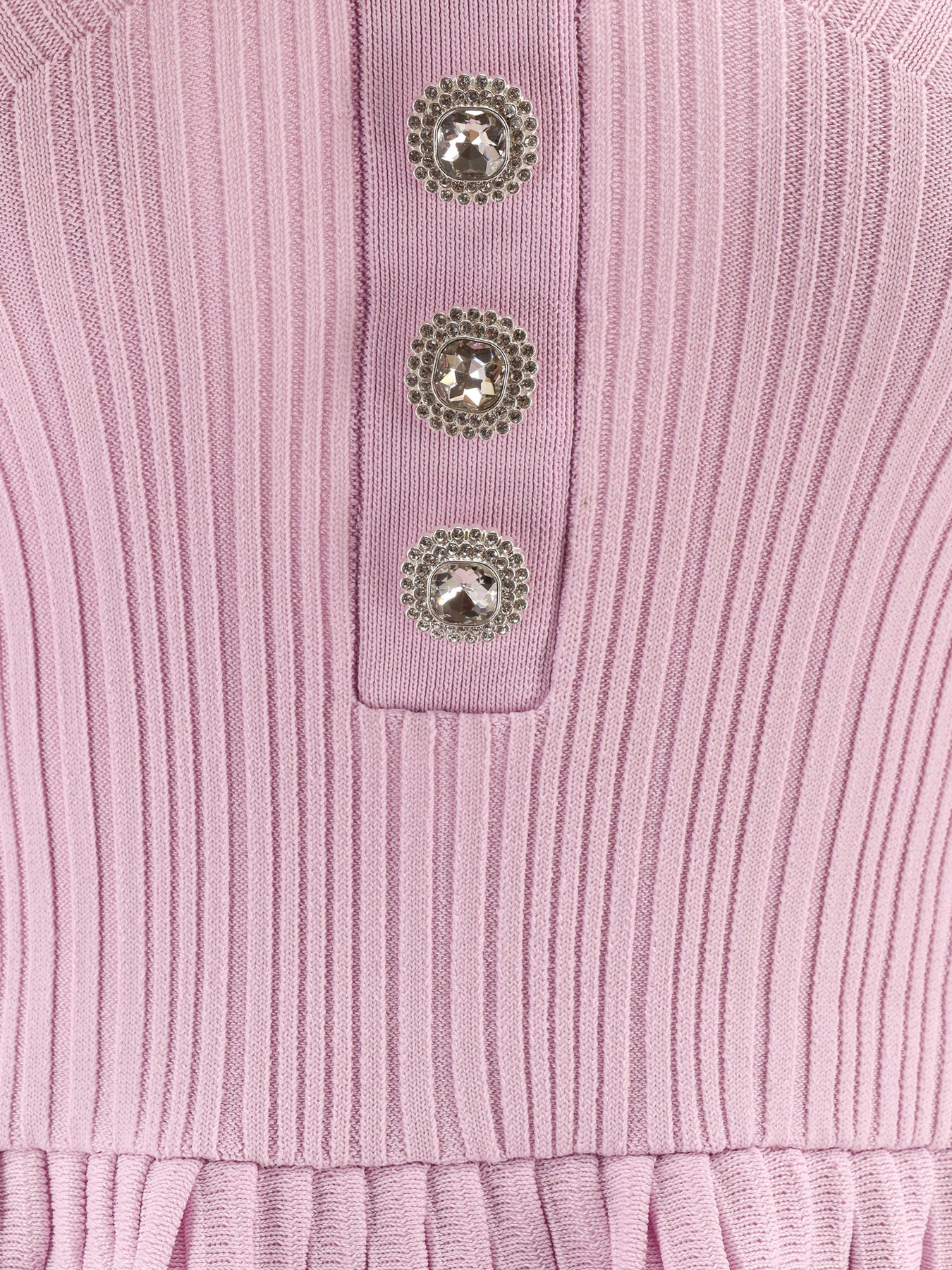 SKU: SS25015SP_PINK - Off-shoulder neckline long sleeve with flared cuff jewel buttons flared skirt 50% viscose 32% polyester 16% polyamide 2% elastane