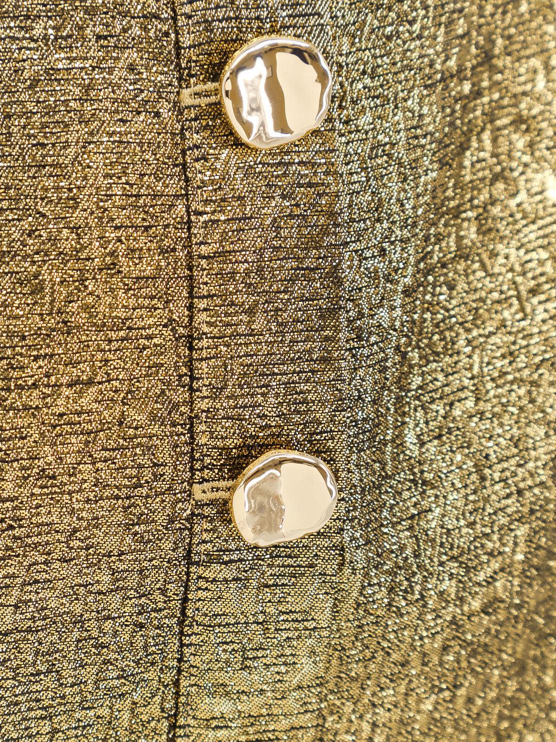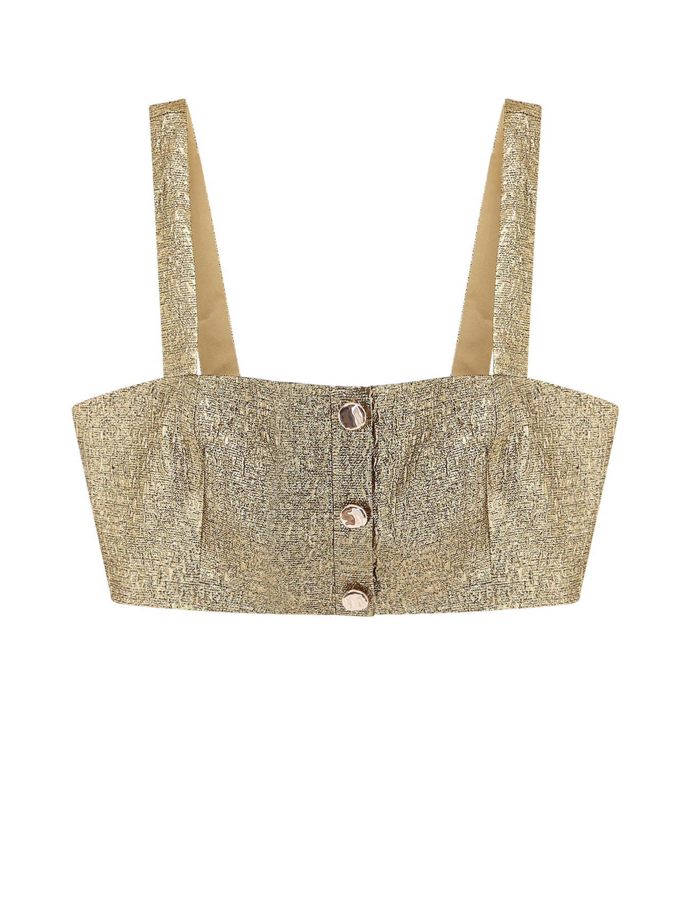 SKU: RS25902TGD_GOLD - Crop fit three jewel buttons elastic detail on the back lined 80% polyester 18% metallic fibre 2% elastane