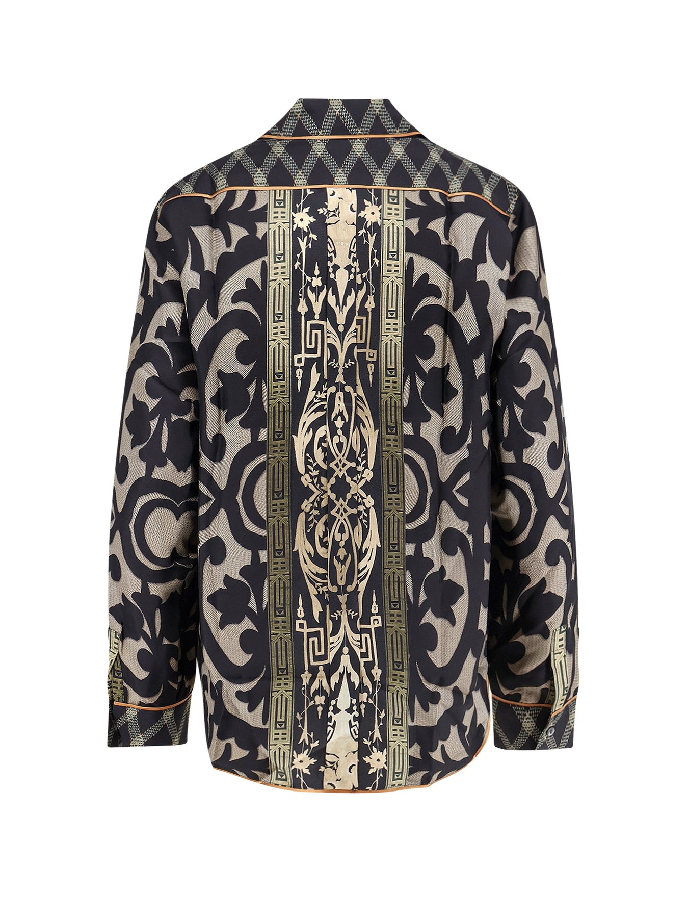 Button closure Pointed collar Long sleeves with buttoned cuffs Made in Italy 100% silk SKU: ALOESCML10642516219101