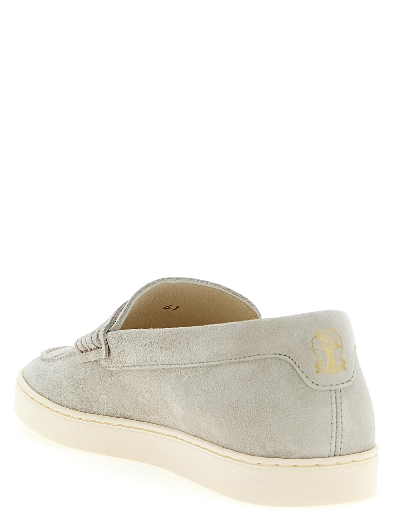 Suede sneakers, slip-on loafers with natural latex sole.