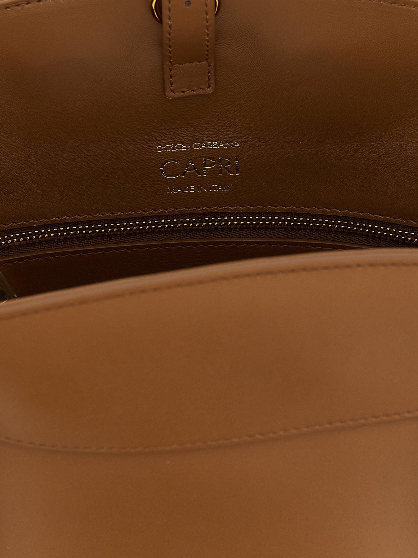 Sunset 'Capri' shoulder bag in Sunset calf leather, crow-shape, overlapping closure with magnetic buckle strap detail, top embossed logo, metal details, double fixed handle