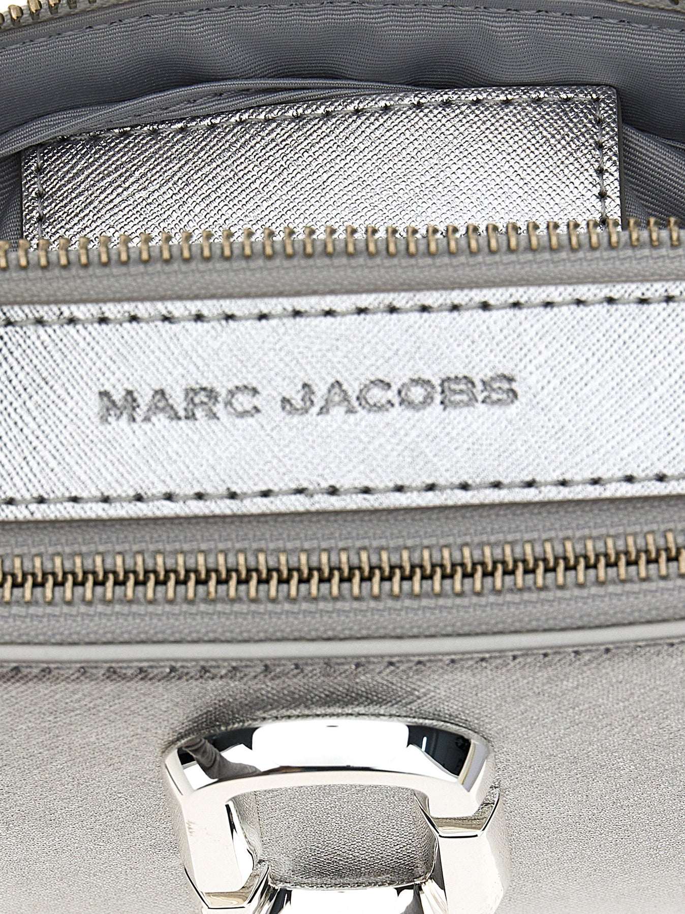 'The Metallic Snapshot' saffiano leather crossbody bag with front logo, zip closure, adjustable and removable shoulder strap.