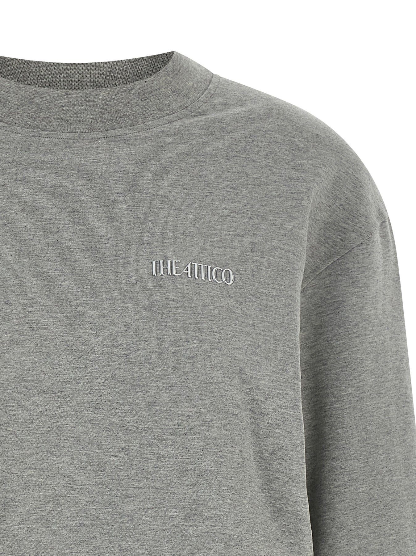 Brushed cotton dress, oversized sweatshirt and draped mini skirt, tone-on-tone metal logo on the front, crew neck, long sleeves with cuffs.