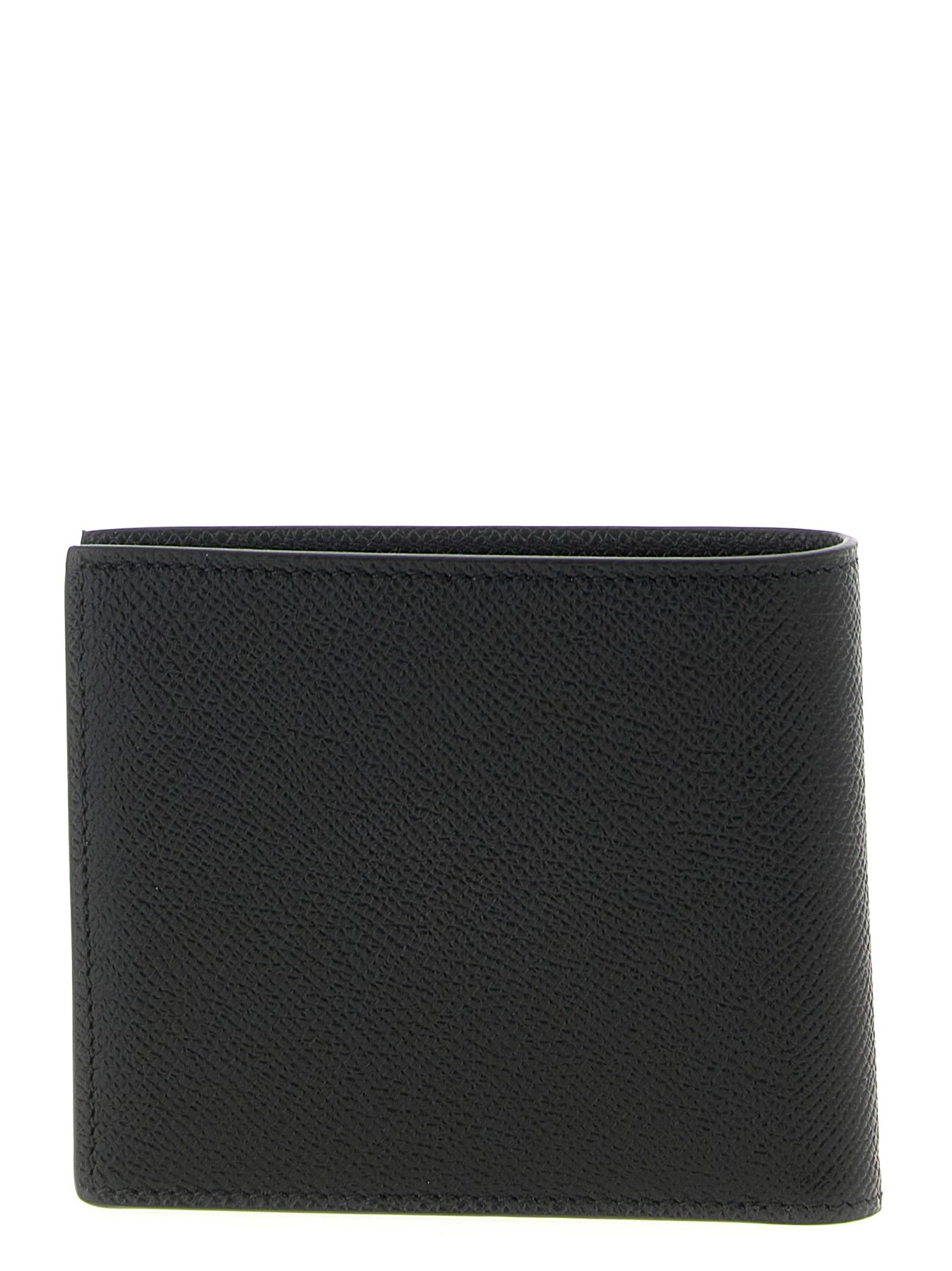 Bifold wallet in small-grain leather with silver metallic front logo.
