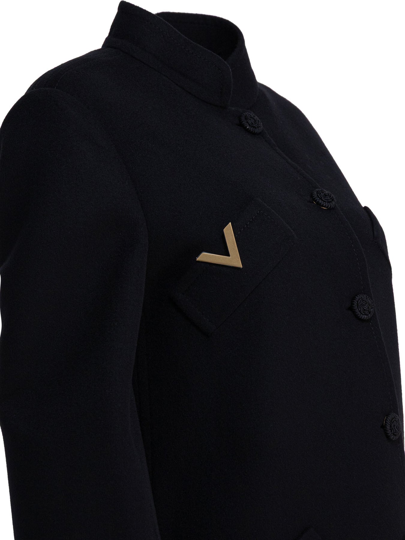 Valentino wool and cashmere coat, tailored construction with clean lines and straight silhouette. Made of blended fabric composed of virgin wool and cashmere. Front closure with embroidered buttons, fully lined structure, two flap pockets and Vlogo detail placed on the chest and front. The sleeves are long, with defined shoulders and regular finish that follows the shape of the body. || - Vlogo on the chest and front - Long sleeves - Embroidered button closure - Two flap pockets - Fully lined construction - Regular fit
