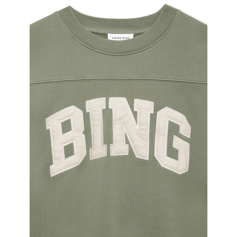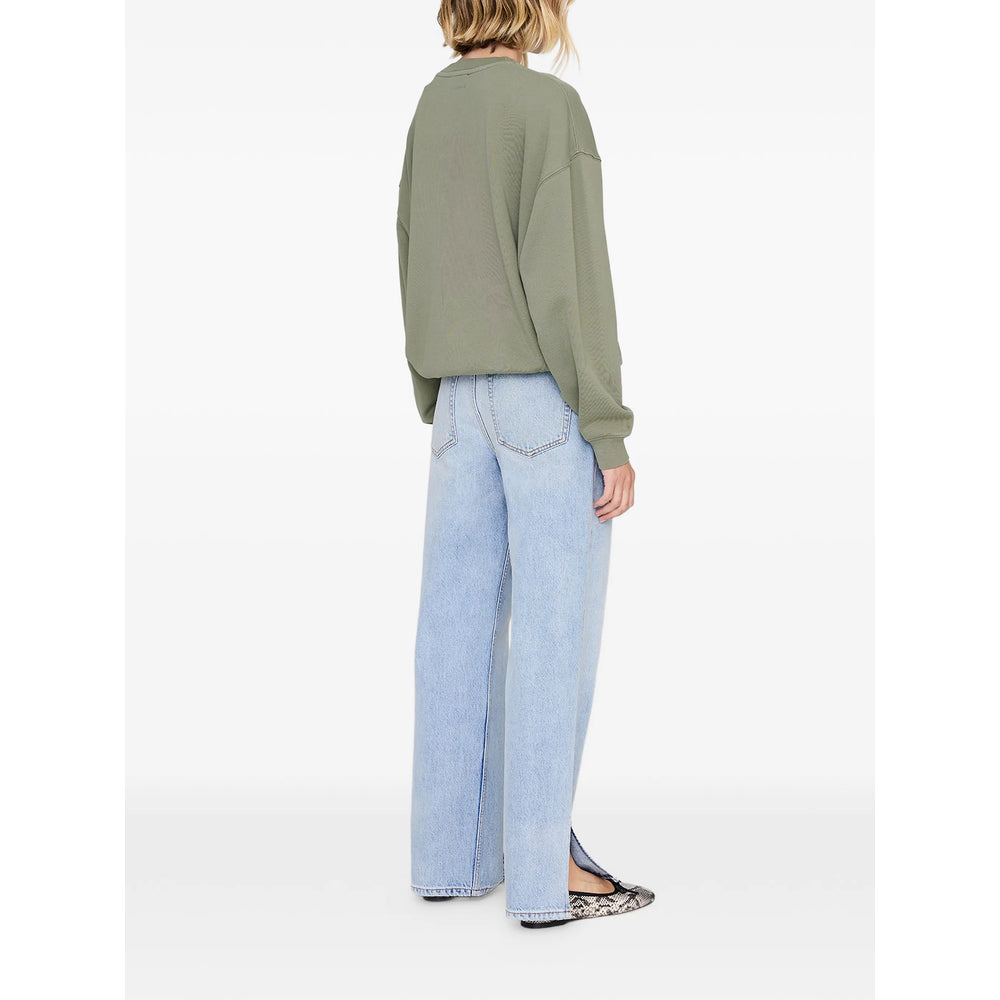 washed olive appliqué detail crew neck ribbed hem ribbed cuffs