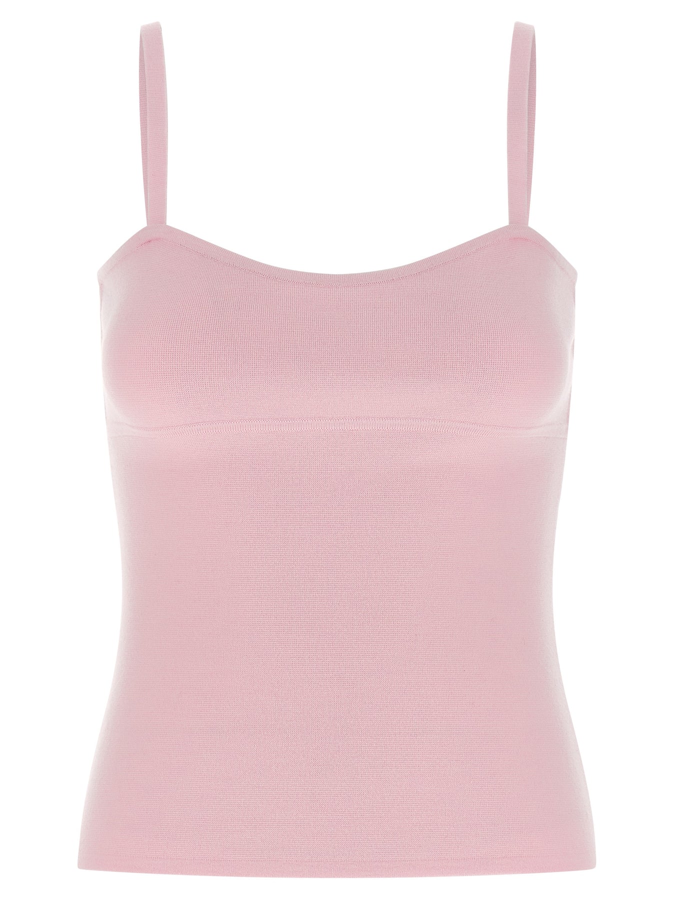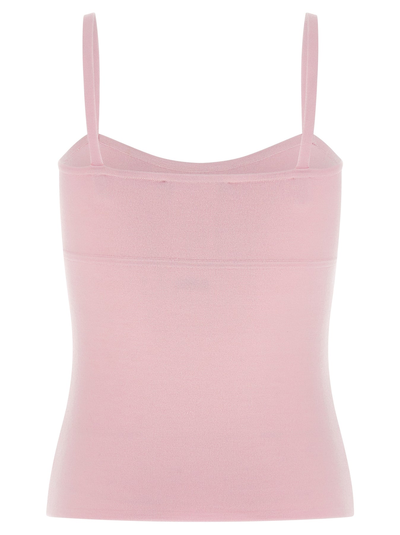 'Mxmepica' top in pure wool yarn worked in fabric stitch, sweetheart neckline, thin straps.