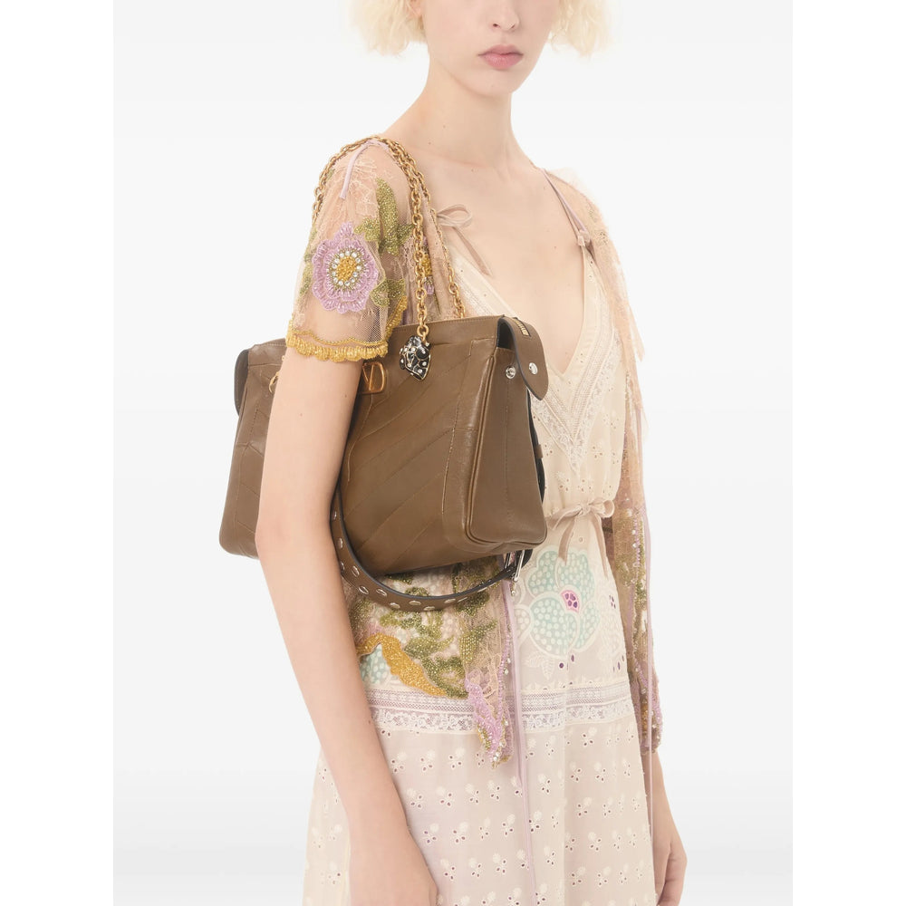 Valentino dress light yellow floral pattern velvet straps velvet bows ruffled hem The full look includes Valentino Garavani accessories.