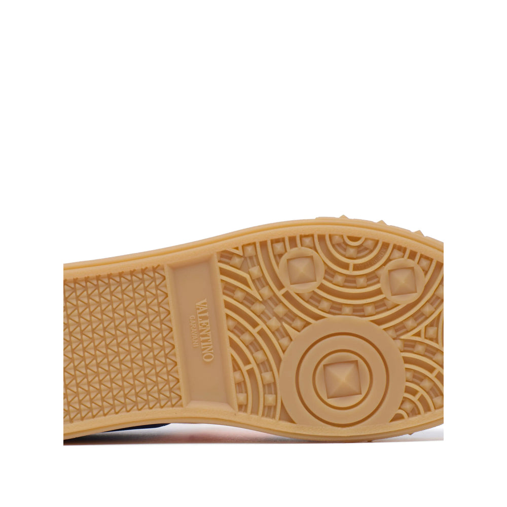 electric blue/carrot orange calf leather suede panelling colour-block panelled design front lace-up fastening embossed logo to the side VLogo Signature signature Rockstud detailing round toe branded insole flat rubber sole