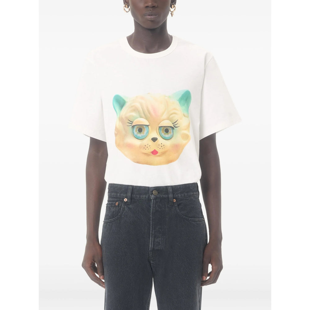 Valentino T-Shirt white round neck short sleeves The model is 187 cm / 6'1'' tall and wears a size M The full look includes Valentino Garavani accessories.