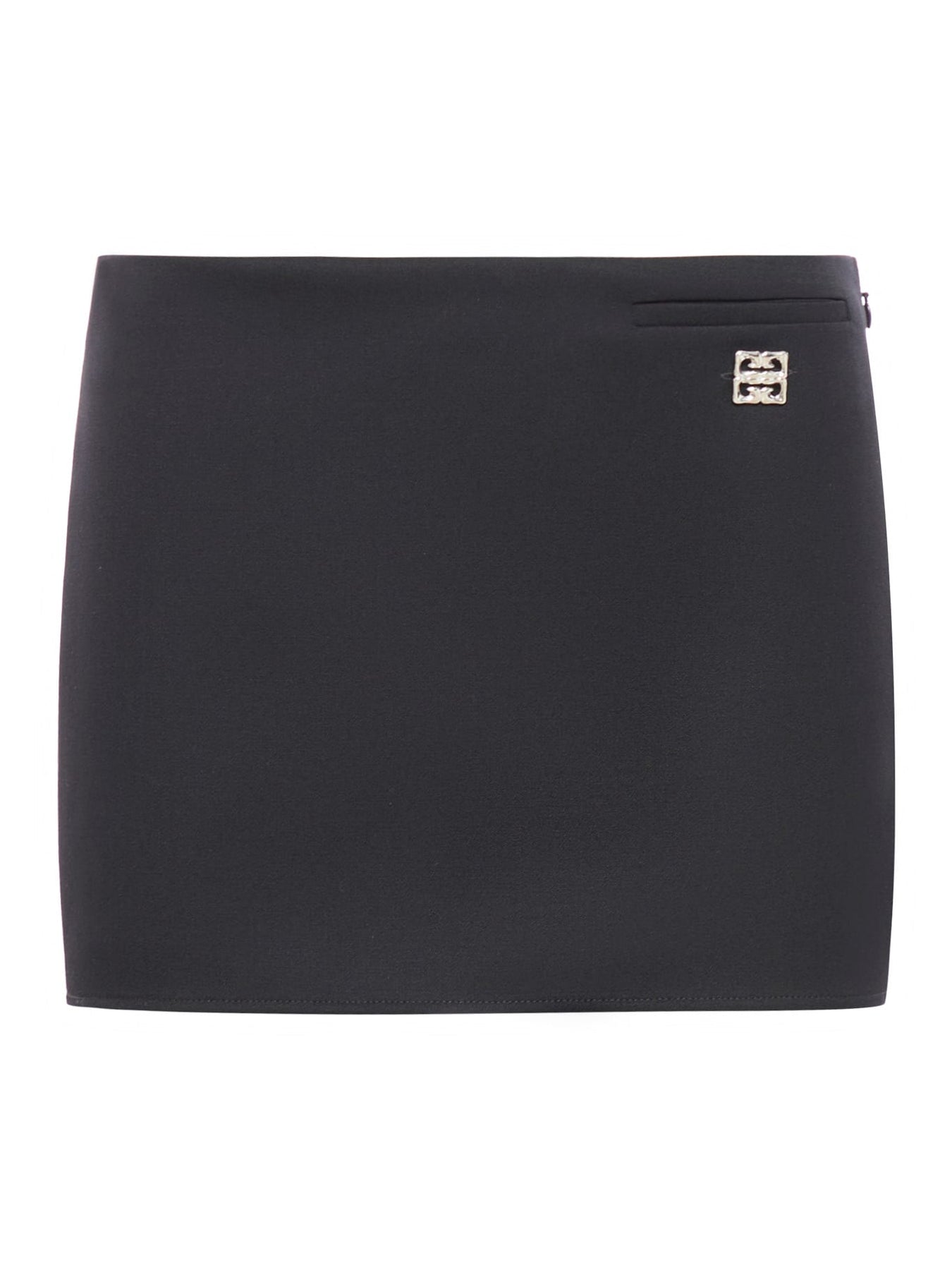 Black wool mini skirt from Givenchy with concealed lateral zip and 4G metal detail.