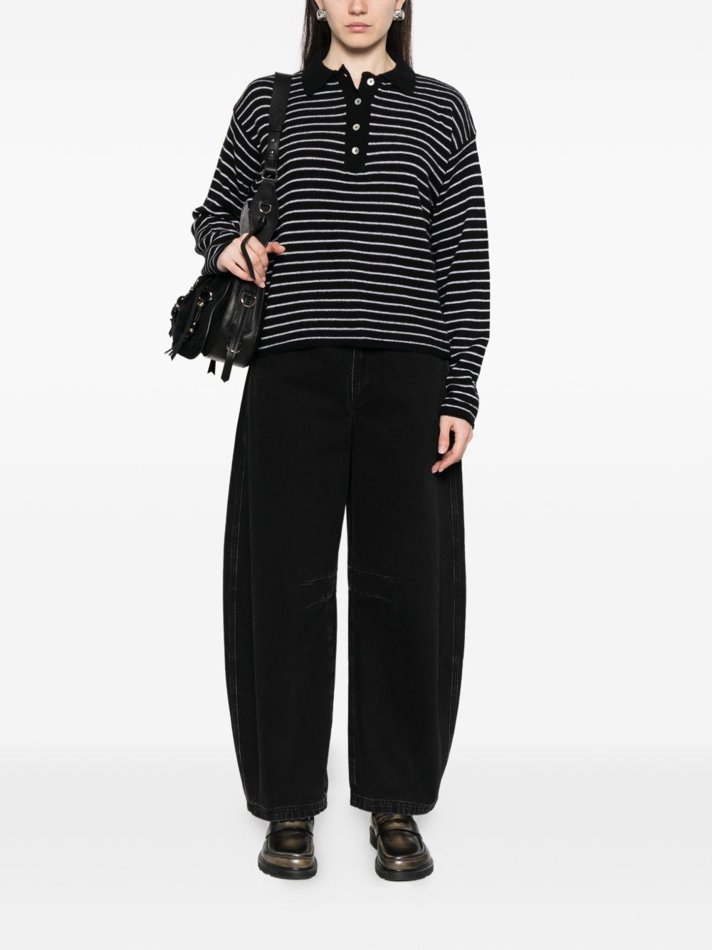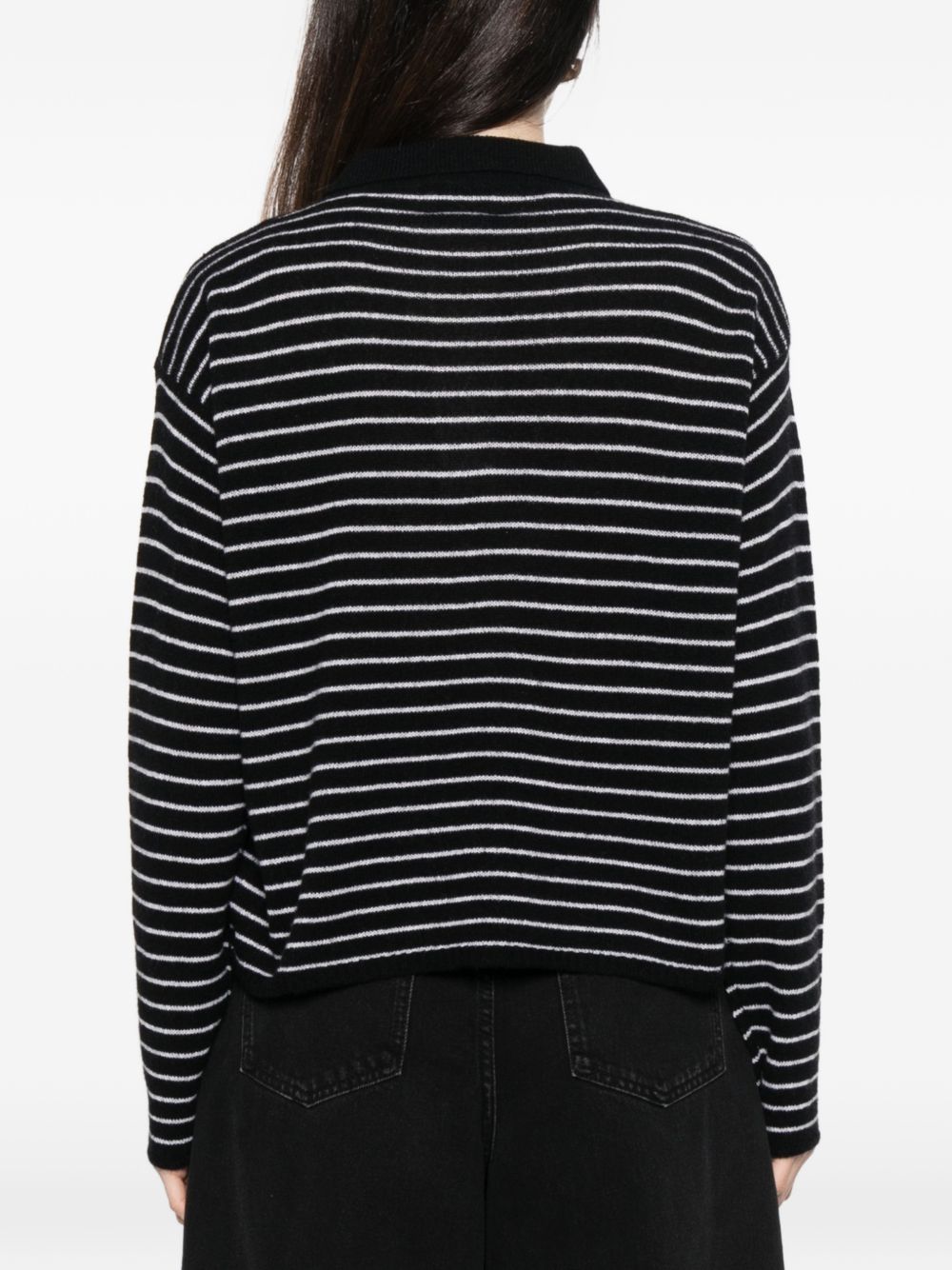 black/white striped point collar button closure long sleeves