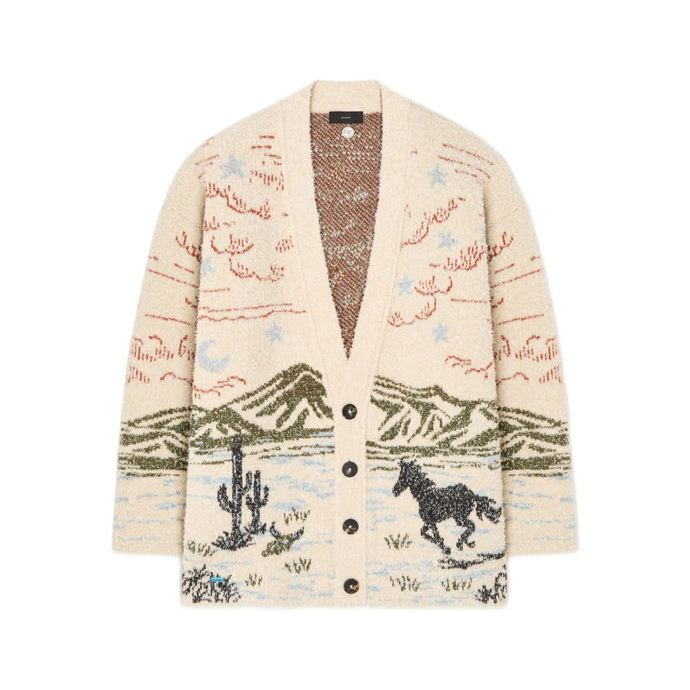 ivory landscape pattern horse motif button fastening textured knit long sleeves