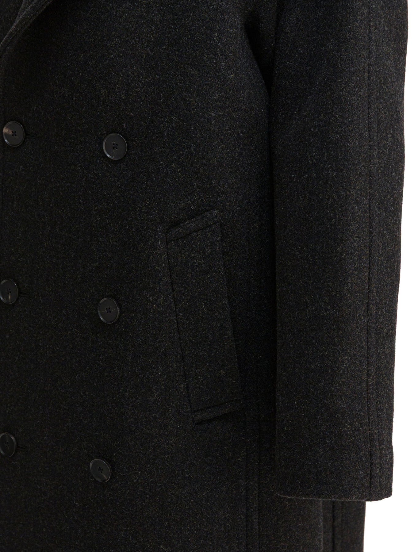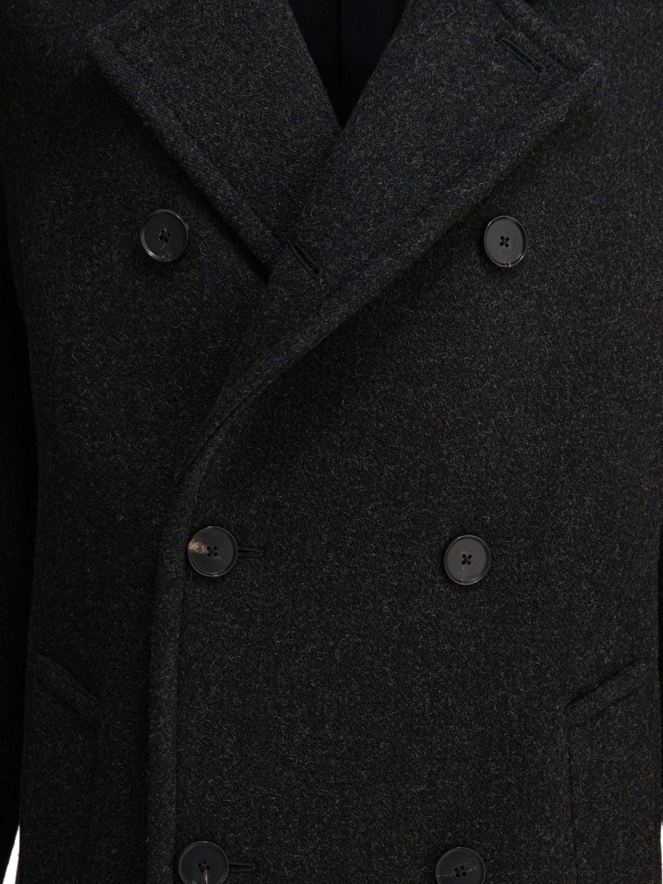 Auralee wool long coat made from a high-quality British Shetland wool blend, spun and woven with a high-twist double weave. The structure features a wide silhouette with a length around the ankle, full lining, and single back slit. The ensemble features a dense, consistent texture that lends solidity to the construction while maintaining volume and shape definition. || - Solid color - High-quality British Shetland wool blend - High-twist double weave - Full lining - Single back slit - Length around the ankle - Regular fit