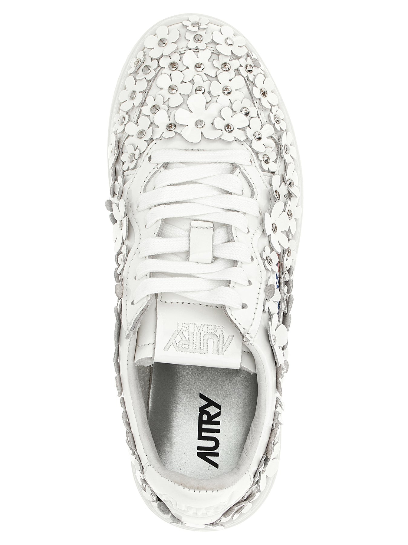 'Medalist' capsule 'Bloom' sneakers in shiny leather with 3D floral appliqué, leather and cotton terry lining, raised leather insole, padded tongue with logo patch and patent leather heel, side logo patch, lace-up closure, rubber sole.