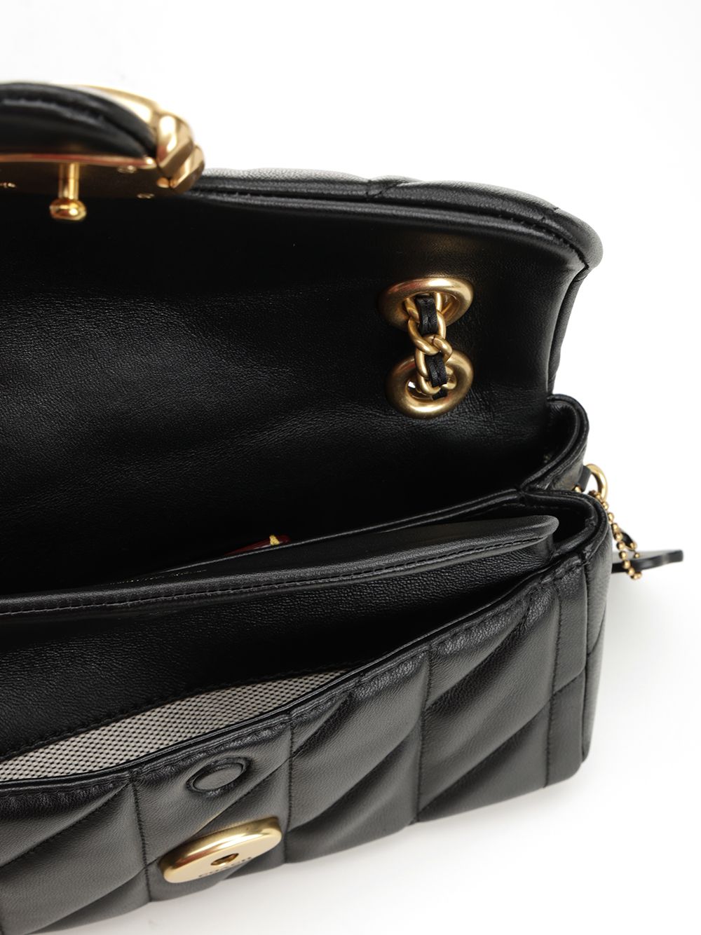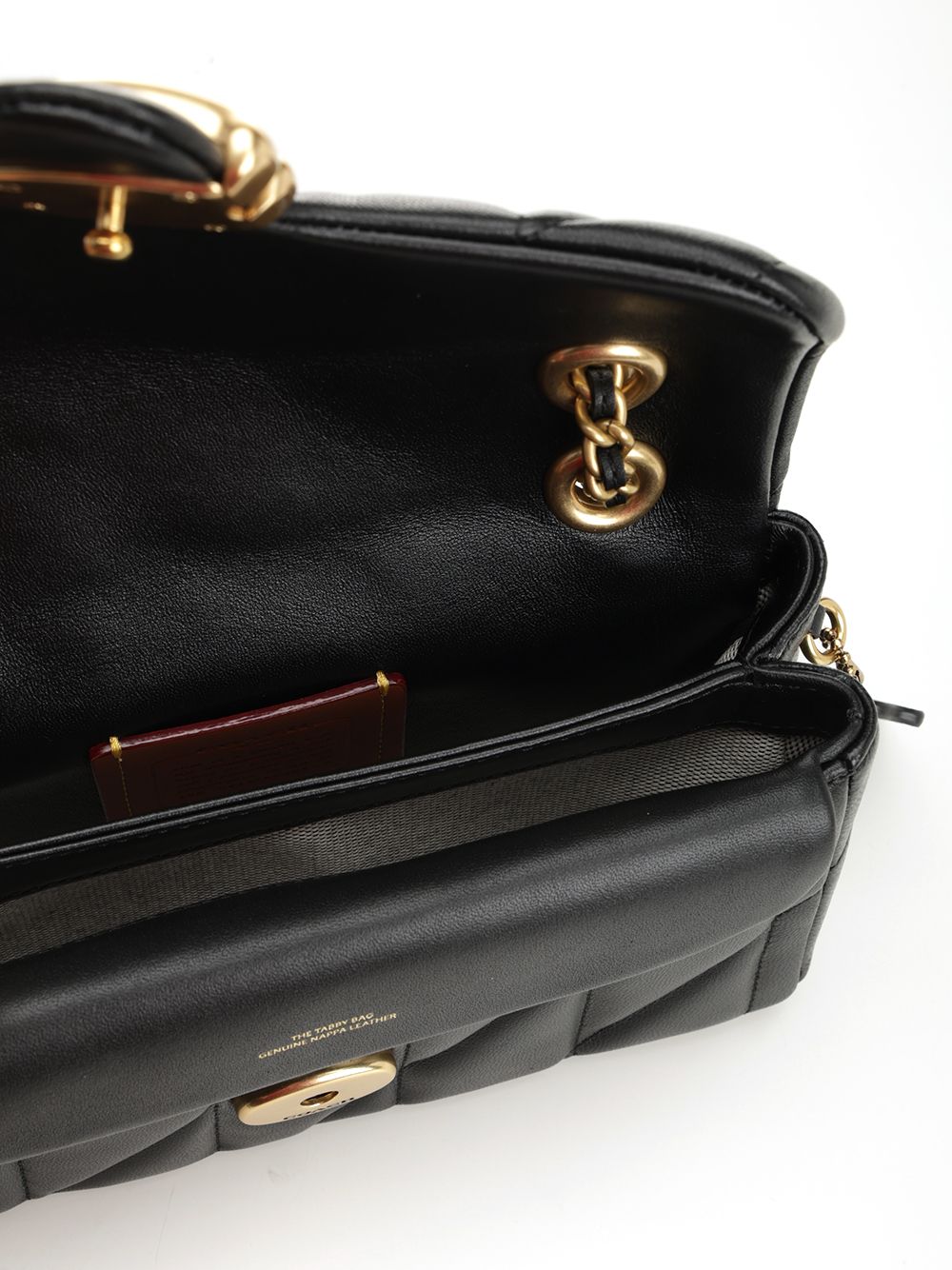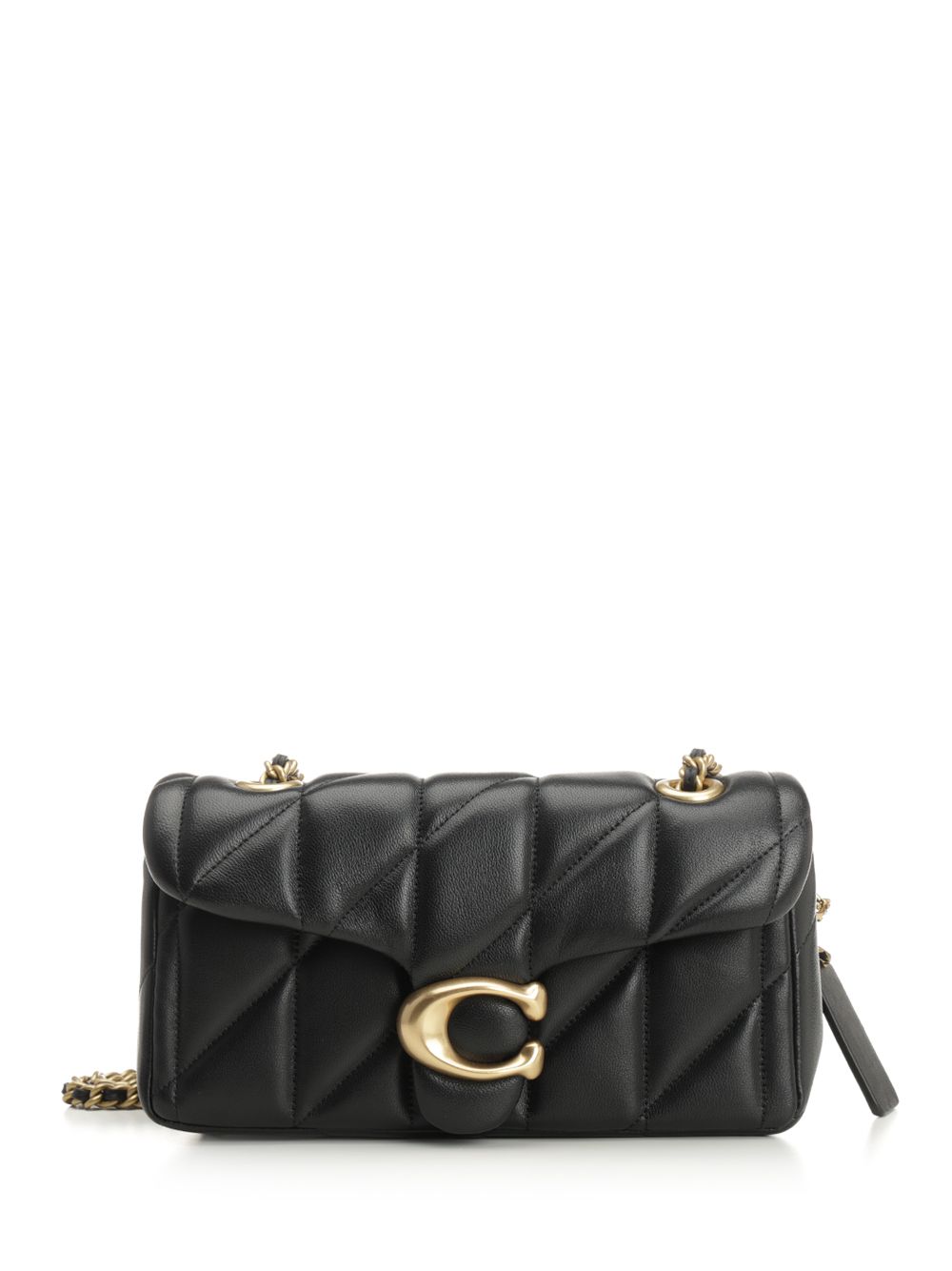 Coach "TABBY 20" quilted nappa leather shoulder bag with leather chain shoulder strap, fabric lining, exterior slot pocket, interior pocket with magnetic snap closure and turn lock