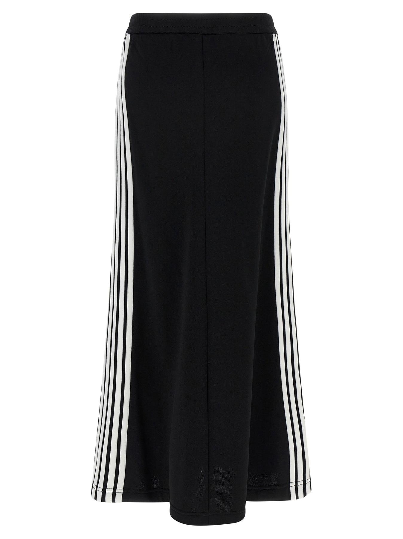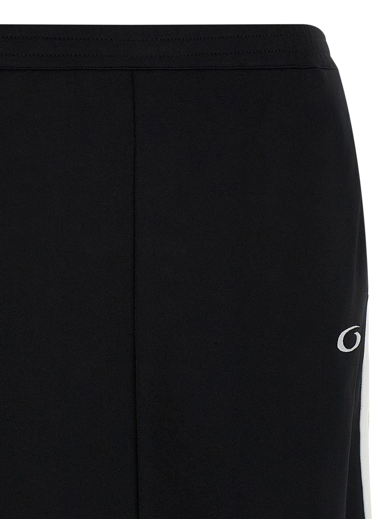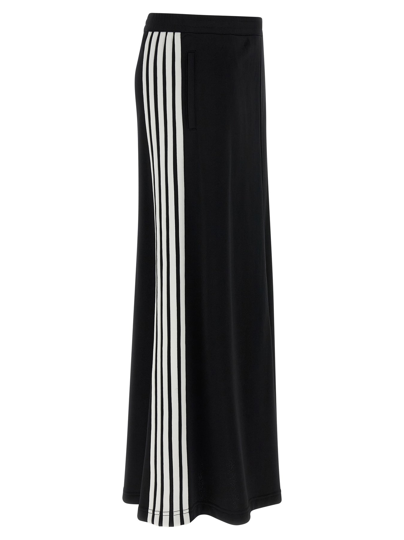 Maxi 'Tracksuit' skirt in synthetic fabric with contrasting side details, brushed cotton lining, front logo embroidery, adjustable drawstring elastic at the waist, pockets, flared design.