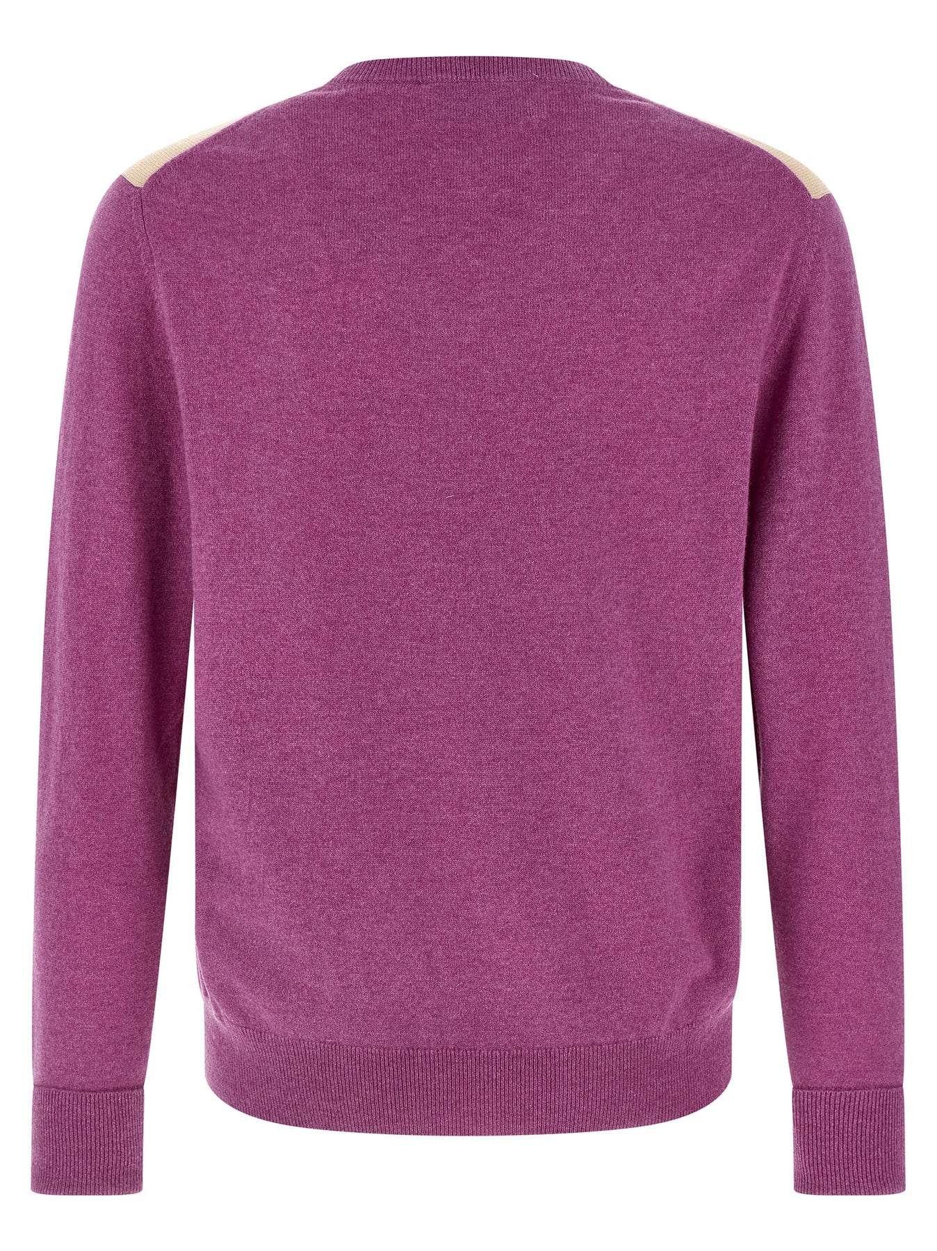 Cashmere sweater with front Argyle pattern, V-neck, long sleeves with turned-up cuffs.
