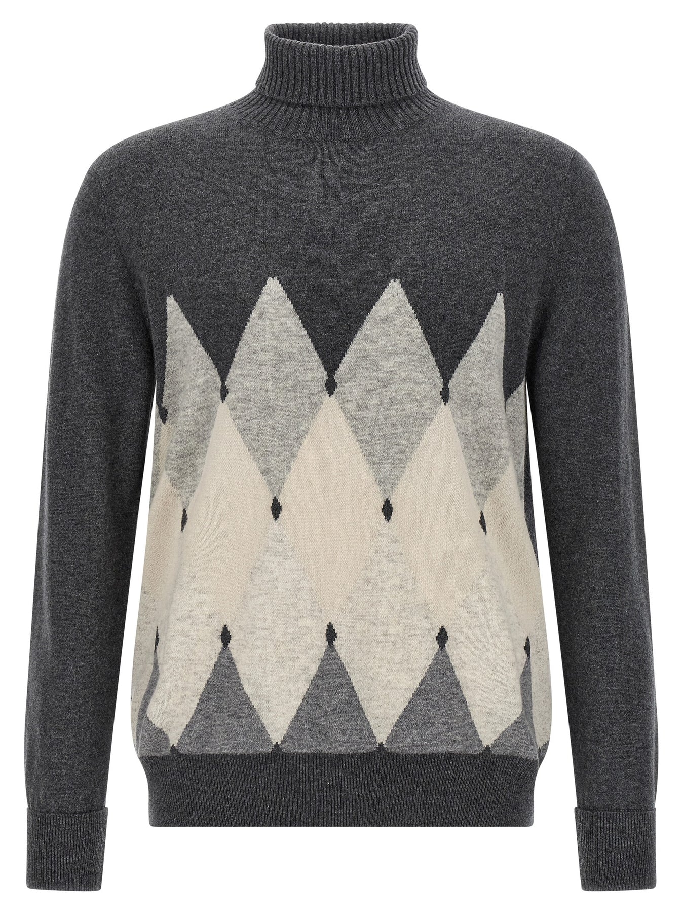 Cashmere turtleneck sweater 7 Argyle pattern, turned-up high neck, long sleeves with turned-up cuffs.