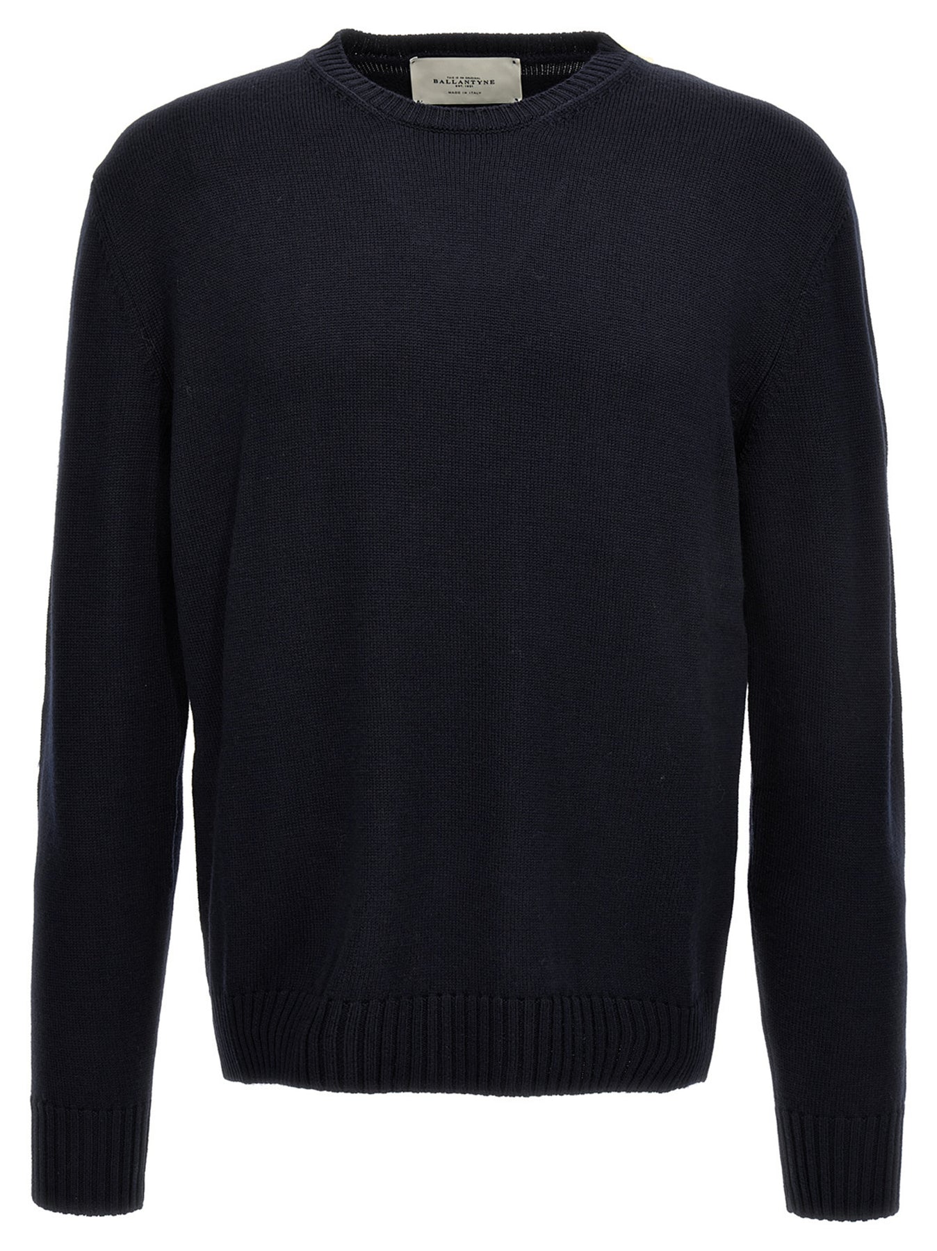 7 fineness merino wool sweater, with crewneck, and long cuffed sleeves.