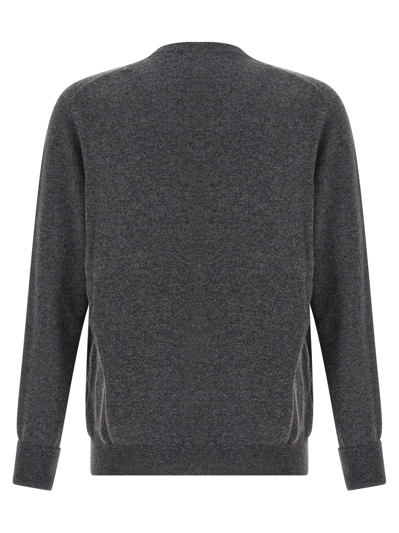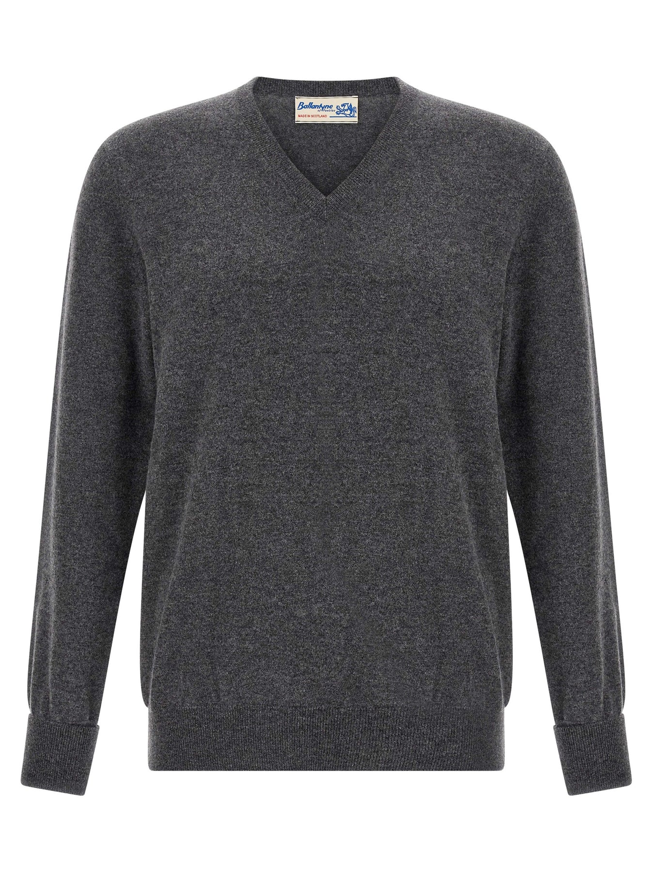 Cashmere sweater with V-neck, long cuffed sleeves.