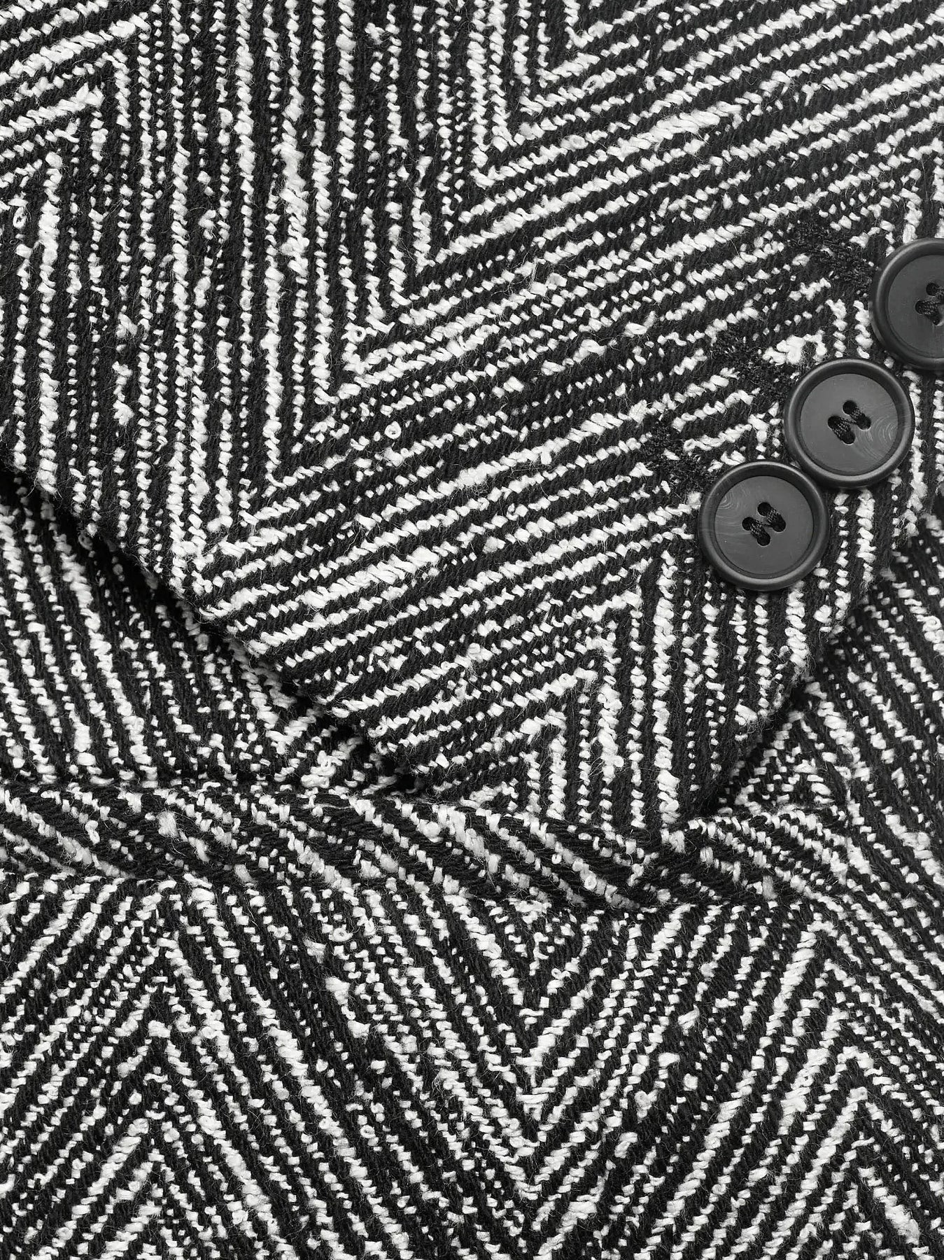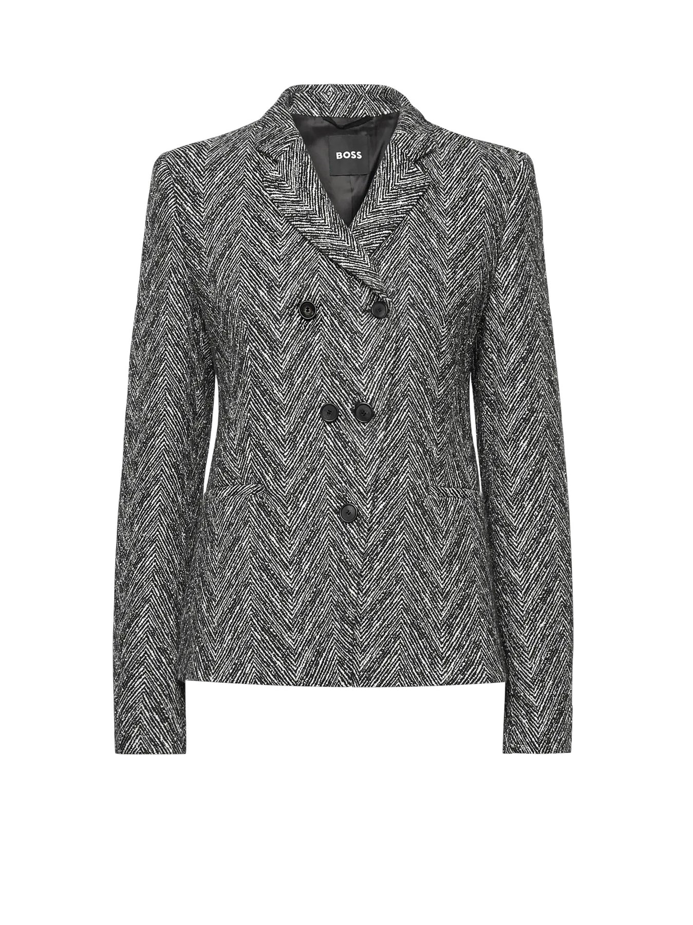 Double-breasted with buttons Mini lapels Double back slit Two front welt pockets 48% cotton 28% linen 20% polyester 4% other fibers Lining: 55% polyester 45% viscose SKU: 50548306960