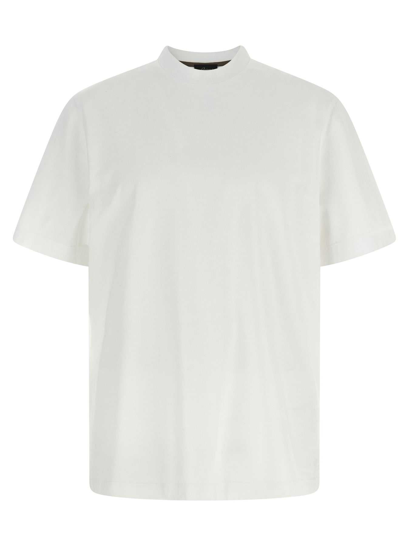 Cotton, crewneck t-shirt, side slits and tone-on-tone leather logo patch, and short sleeves.