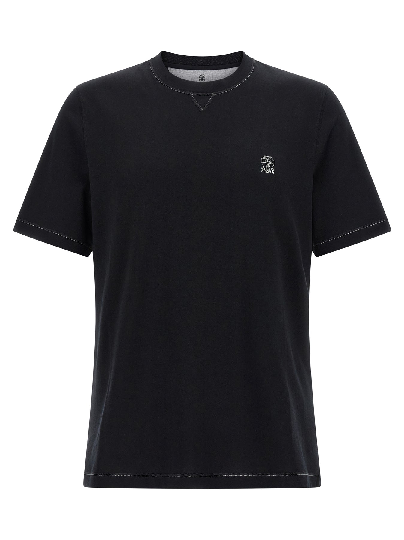 Cotton jersey t-shirt with contrast stitching, front logo embroidery, crew neck, short sleeves.