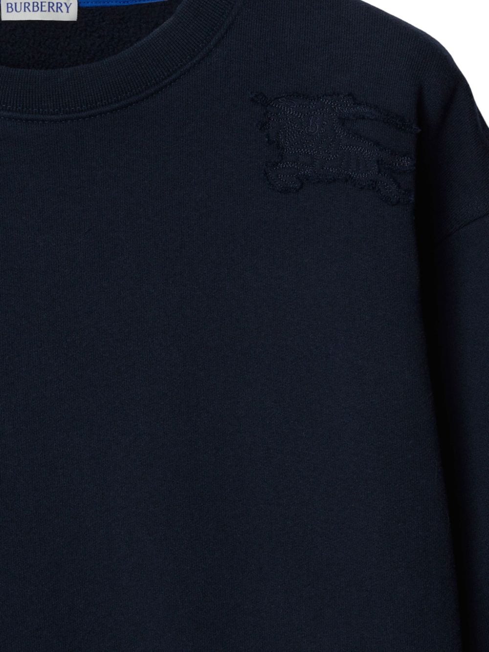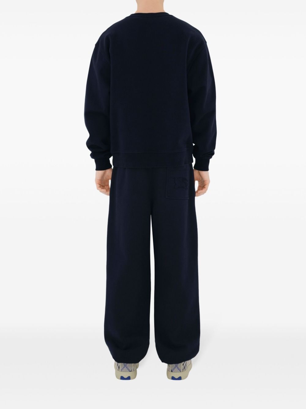 navy blue cotton signature Equestrian Knight motif ribbed trim crew neck drop shoulder long sleeves straight hem We've partnered with Good On You — an independent agency that rates how brands perform in relation to their impact on the planet, people and animals, with a multi-criteria rating simplified to a five points scale. In order to be awarded our conscious label, larger brands need to score a minimum of four out of five ('Good'), while smaller brands must score at least three out of five ('It's A Start'). This item comes from a brand rated three out of five ('It's A Start') by Good on You at the time it was added on FARFETCH. Please note, this is a brand-level rating and does not guarantee that this product is made with conscious materials. Learn more about what makes a product Conscious on our Conscious Criteria page