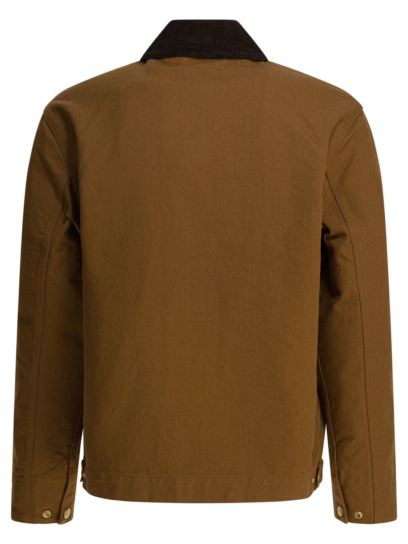 Carhartt WIP "Detroit" overshirt jacket, unlined model made of heavy Dearborn canvas, with stable structure and velvet collar. Front closure is by full zipper while cuffs and hem have adjustable snaps. There is a zippered pocket on the chest and a square fabric-applied label as a distinctive detail. || - Solid color - Long sleeves - Velvet collar - Front zipper closure - Zippered chest pocket - Adjustable cuffs and hem - Square fabric label - Regular fit