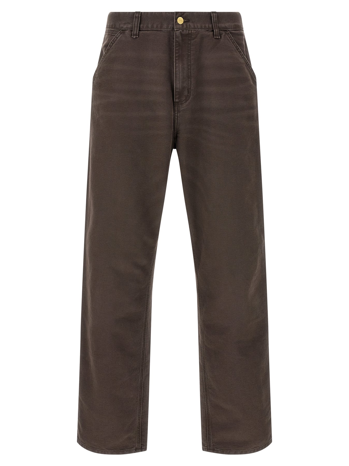 'Single Knee' trousers in heavy Dearborn cotton canvas Stone Canvas wash, comfortable straight leg, regular waist, front zip and button closure, pockets, back logo patch. SUSTAINABLE: This product is made of organic cotton.
