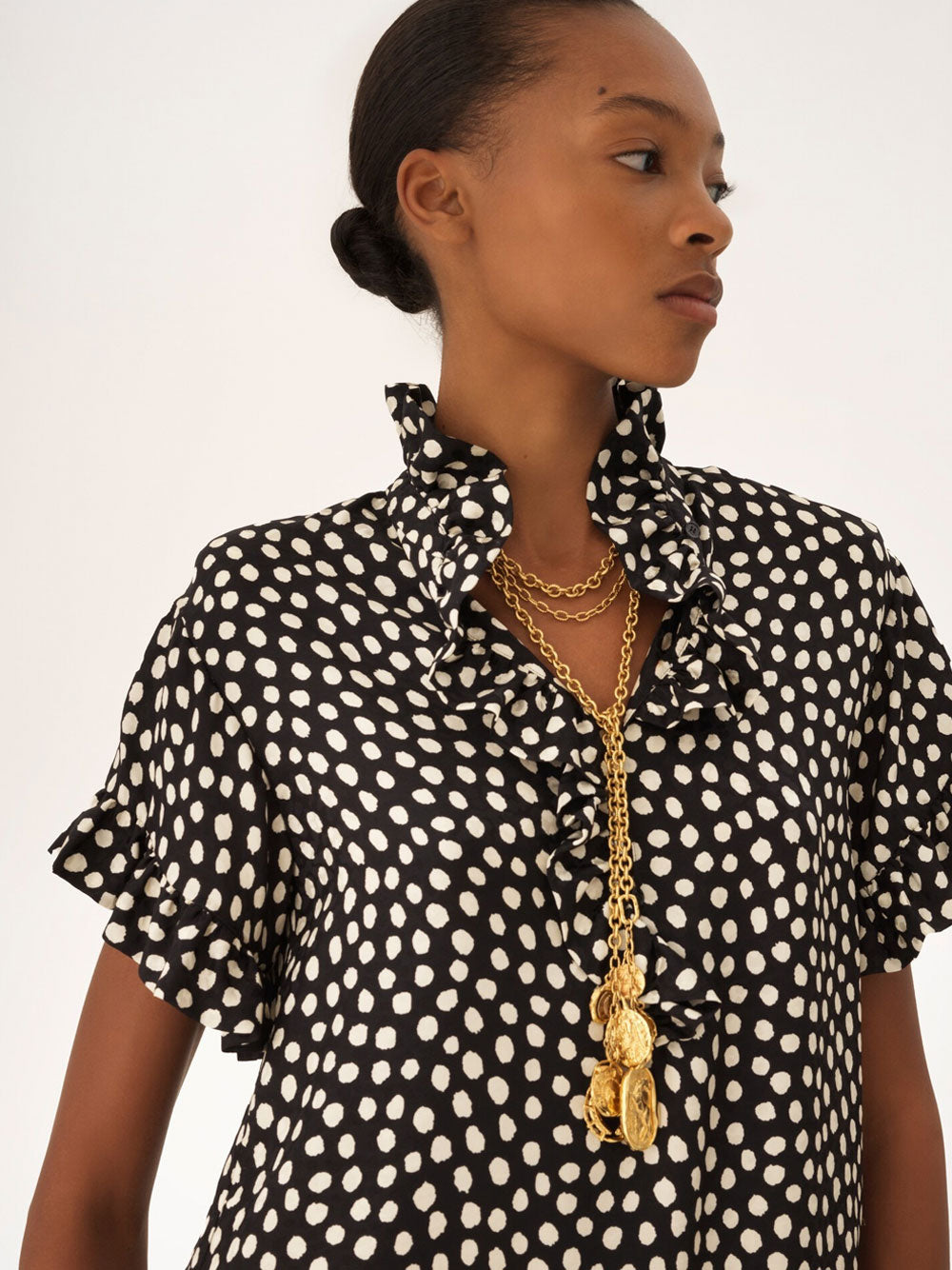 Short-Sleeved Dots-Print Silk Jacquard Mini Dress