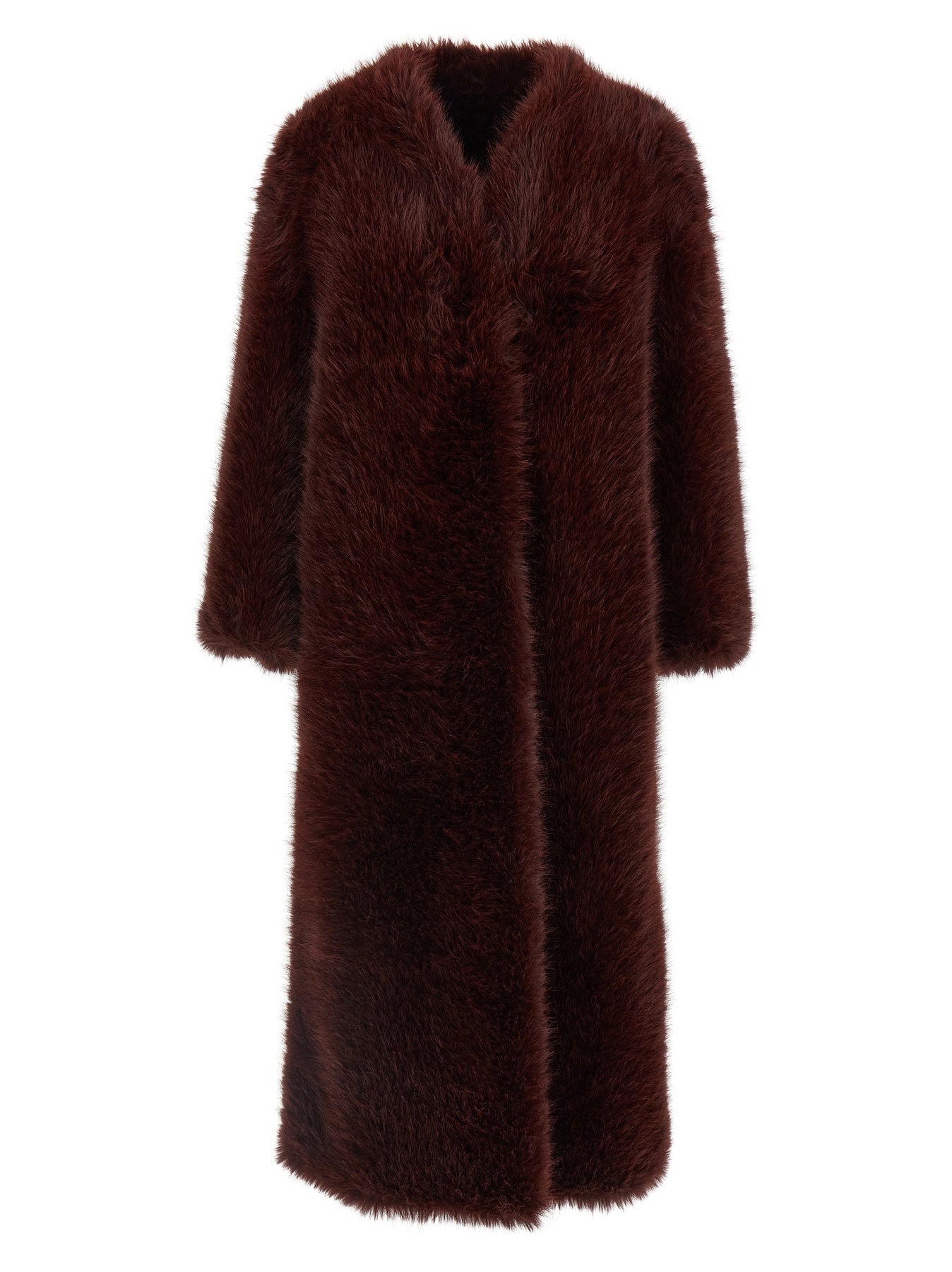 'Biscuit' faux fur coat with front snap button closure, pockets, long sleeves, back split, lining, removable matching tubular scarf.
