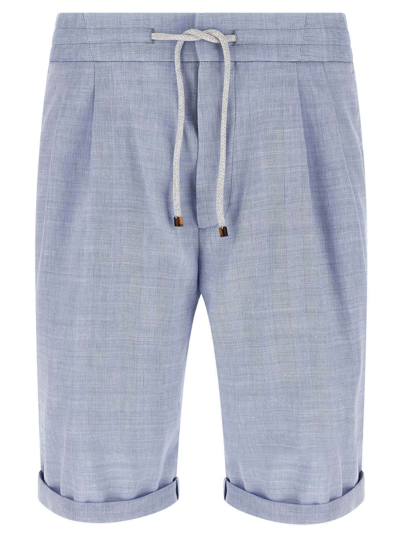 Chevron woven bermuda shorts in linen and virgin wool, drawstring at the waist, front zip and hook closure, pockets, turn-up on the leg bottom.