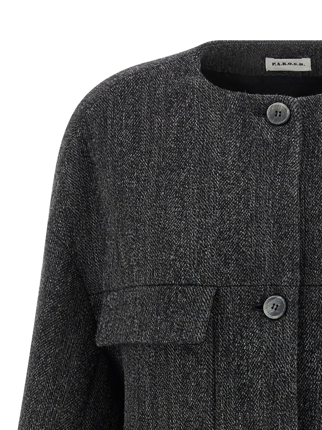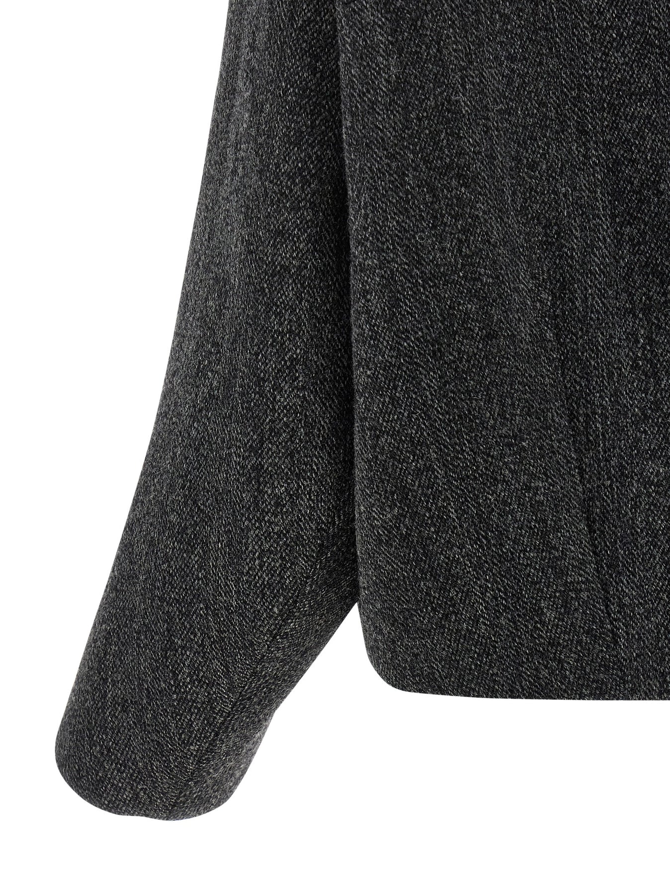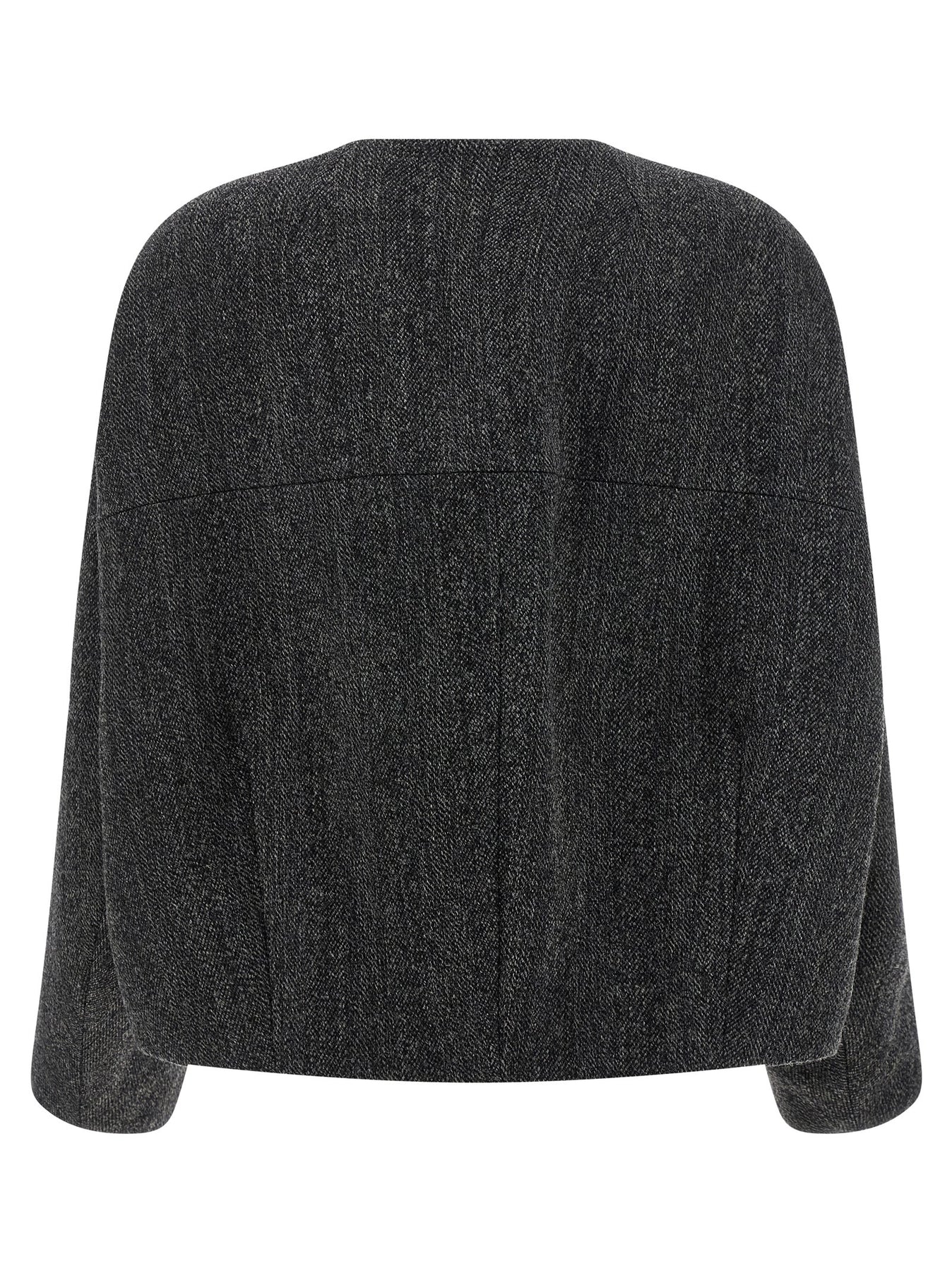 'Lowolf' wool and cotton mélange jacket, crew neck, front button closure, pockets, long wide and curved sleeves with dropped shoulders, viscose blend lining.