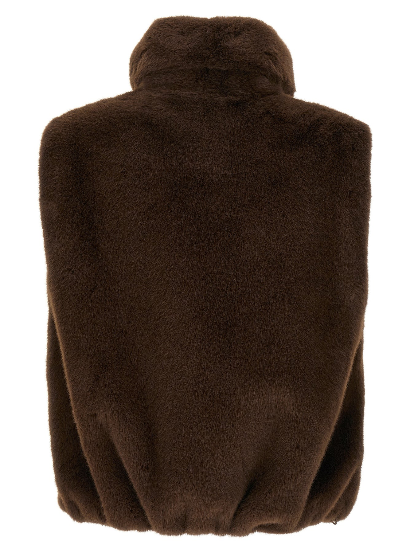 'Deyn' fur-effect fabric vest with tone-on-tone leather-effect fabric details, turned-up high neck, front zip closure, pockets, drawstring at the hem, monogram fabric lining.