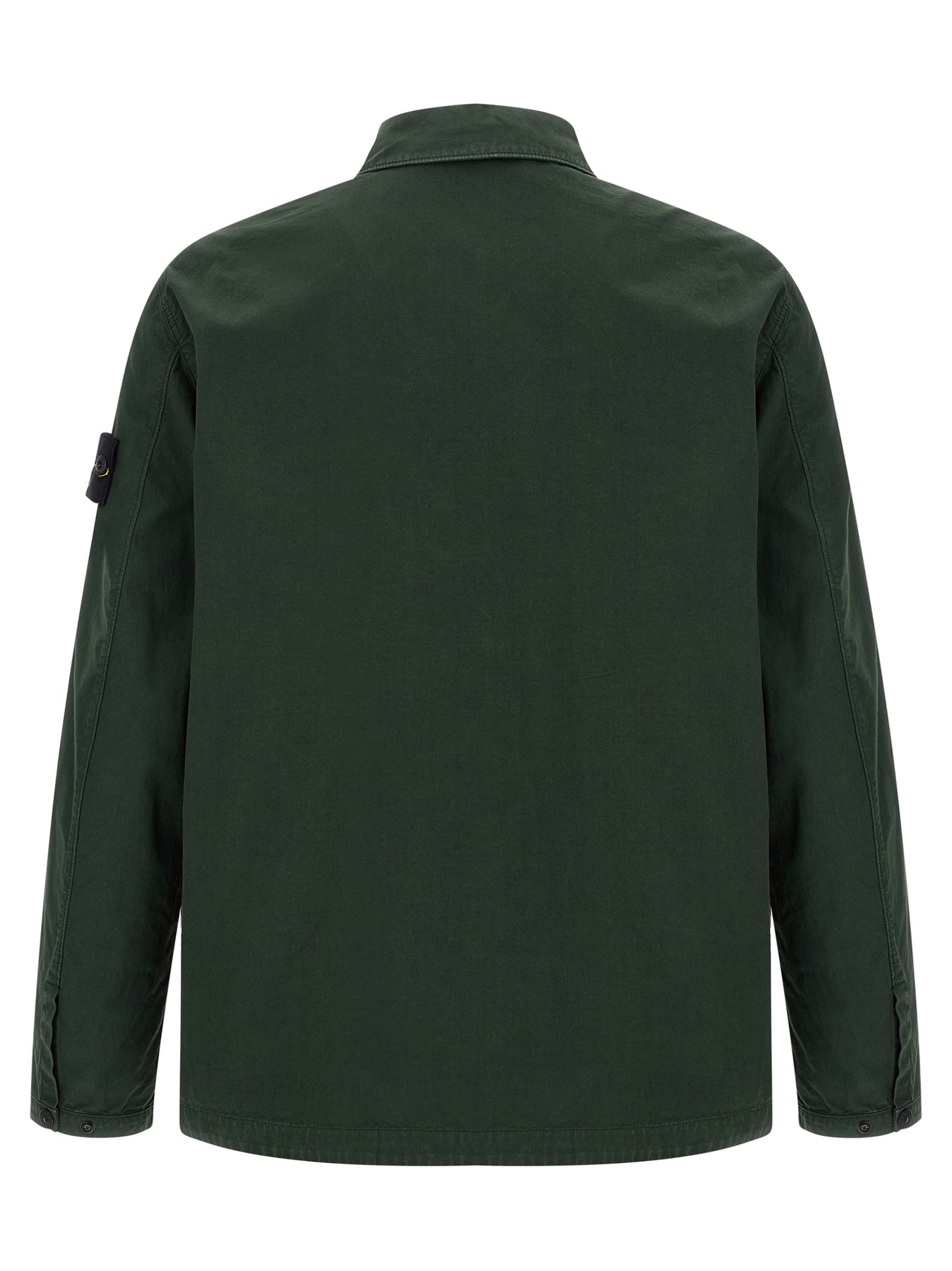 'RWS' cotton canvas overshirt with front zip closure, breast pocket, long cuffed sleeves and logo badge.